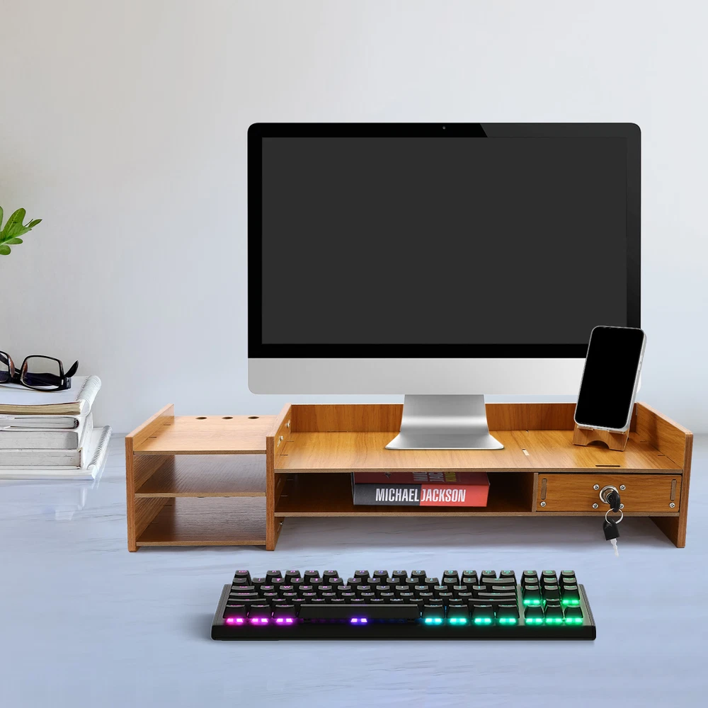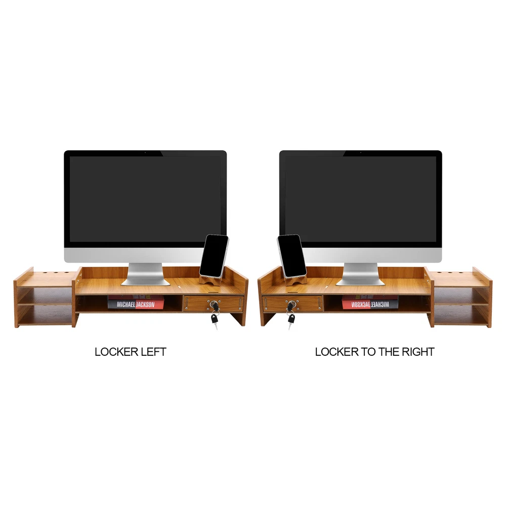 Specifications Color: Wood Material: MDF Process: Veneering Shape: Rectangle Style: Modern Assembly Required: Yes Mounting Type: Tabletop Stand Total Load-bearing Capacity: 2.5kg-5kg/5.51-11.02lbs Thickness: 5mm/0.2in Side Cabinet Length: 14.5cm/5.71in Cabinet Tier Spacing: 5cm/1.97in Drawer Length: 16.5cm/6.5in Stand Compartment Length: 29.5cm/11.61in Overall Product Size: 64*20*13.54cm/25.2*7.87*5.33in Package Size: 53*21*4cm/20.87*8.27*1.57in Gross Weight: 2.15kg/4.74lbs Net Weight: 2kg/4.41lbs Package Included 1* Computer Monitor Stand 2* Keys 1* Phone Holder 1* English Manual Other Accessories for Installation Have a nice day~ Description This computer monitor stand is not only durable but is also extremely space-efficient. It can stabilize your monitor and organize your office supplies efficiently, taking the clutter out of your desktop, and providing a cost-effective solution to your needs. We encourage you to adopt this storage option for a tidy, high-value office environment. Key Features Selected Material : High-quality MDF (5mm) with a veneering process makes this product wear-resistant, corrosion-resistant, anti-rust, strong, durable, and not easy to deform, so it can be used for a long time. Ample Storage Capacity : It consists of a drawer (with a lock), a large compartment, two small compartments, and two top platforms. You can store pens, notebooks, paper clips, and other small items in different compartments, put valuables or information in the lockable drawer, tuck your keyboard and mouse neatly underneath, and place your computer monitor, teacups, and other frequently used items on the countertop for added convenience. Space-Saving : The product can be placed on a tabletop, making the most of vertical space, saving countertop space, and keeping your office cleaner and tidier. Ergonomic Comfort : This monitor stand raises your computer screen to your ideal viewing height, effectively improves posture, relieves your shoulders, neck, and eye fatigue, and keeps you comfortable while you work. Elegant Appearance : It adopts a pleasing wood color and rectangular shape to present a simple but eye-catching outlook, which can match most decorating styles and color themes, suitable for most use scenarios. Simple Installation : The simple structure, pre-drilled holes, complete accessories, and detailed English manual allow you to complete the installation and start using it in a short period. In addition, the side cabinet can be installed left or right, providing you with more installation flexibility. Effortless Cleaning : With its simple construction and smooth surface, you can easily wipe off surface dust with a damp rag (not included). Ideal Gift : Thanks to its functionality and beauty, you can give it to your friends as a housewarming, Christmas, birthday, anniversary, or Thanksgiving gift! Customer Service : We aim to provide quality products and services. If you have any problems, please feel free to contact us. We will reply and solve the problem for you as soon as possible. Details Phone Holder : It is convenient for you to place your mobile phone for entertainment while eating or resting. 2 Keys : They lock a drawer and one of them can also be used as a spare key to prevent loss. Raised Base : It promotes air circulation and makes it easier for you to clean the bottom. Heightened Guardrail : The top guardrail can effectively prevent items from falling off. Open Compartments : They make it easy for you to identify and reach items in time. Application It is suitable for study, office, and desk for storing computer monitors, files, notebooks, and other office supplies. Specifications Color: Wood Material: MDF Process: Veneering Shape: Rectangle Style: Modern Assembly Required: Yes Mounting Type: Tabletop Stand Total Load-bearing Capacity: 2.5kg-5kg/5.51-11.02lbs Thickness: 5mm/0.2in Side Cabinet Length: 14.5cm/5.71in Cabinet Tier Spacing: 5cm/1.97in Drawer Length: 16.5cm/6.5in Stand Compartment Length: 29.5cm/11.61in Overall Product Size: 64*20*13.54cm/25.2*7.87*5.33in Package Size: 53*21*4cm/20.87*8.27*1.57in Gross Weight: 2.15kg/4.74lbs Net Weight: 2kg/4.41lbs Package Included 1* Computer Monitor Stand 2* Keys 1* Phone Holder 1* English Manual Other Accessories for Installation Notes Please check the size carefully before ordering. Please note that decorations, computers, and other items shown in the picture are not included in the product. Please allow the slight color difference caused by the shooting light and 1-3 cm error due to manual measurement, and make sure you do not mind before ordering. Payment Delivery details Terms of sales About us Contact us Payment We accept ebay payment 。 Fees such as import duties, taxes are not included in the item price or shipping costs. These charges are the buyer's responsibility. Delivery details Shipping: 2-9 working days to: USA Terms of sales We maintain high standards of excellence and strive for hundred percent customer satisfaction. Feedback is very important to us. We hope that you contact us immediately before you give neutral or negative feedback, so that we can address your concerns. It is impossible to address issues if we do not know about them! About us Your satis faction is our ultimate goal. We work hard to earn your trust and future business. Our certified technicians have tested each item before shipping. The unit comes with 1 year limited warranty on all manufacturing defects. a) If you receive a defective item, you may return it or ask for a discount. Please contact us within 14 days after you receive the package. b) What you returned must be intact and in its original packaging as re? u. Customer is responsible for shipping costs of the returned item. c) We will cover the cost of shipping back t with the shipping rate indicated in the registration page. We will send you a new unit or refund the full payment you paid. Thank you. Contact us Business Hour Business Hour: Monday To Friday: 8:30 AM to 5:00 PM (Bei