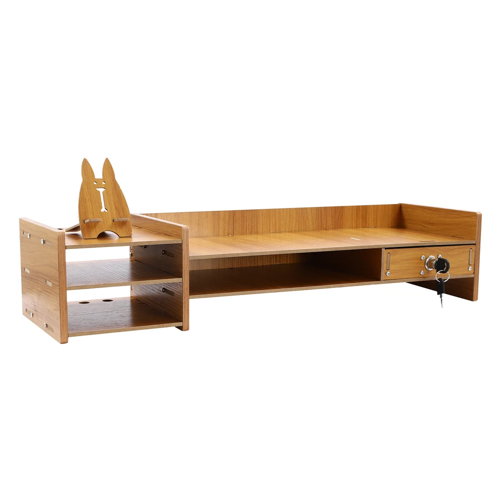 Specifications Color: Wood Material: MDF Process: Veneering Shape: Rectangle Style: Modern Assembly Required: Yes Mounting Type: Tabletop Stand Total Load-bearing Capacity: 2.5kg-5kg/5.51-11.02lbs Thickness: 5mm/0.2in Side Cabinet Length: 14.5cm/5.71in Cabinet Tier Spacing: 5cm/1.97in Drawer Length: 16.5cm/6.5in Stand Compartment Length: 29.5cm/11.61in Overall Product Size: 64*20*13.54cm/25.2*7.87*5.33in Package Size: 53*21*4cm/20.87*8.27*1.57in Gross Weight: 2.15kg/4.74lbs Net Weight: 2kg/4.41lbs Package Included 1* Computer Monitor Stand 2* Keys 1* Phone Holder 1* English Manual Other Accessories for Installation Wood Desk Organizer Home Office Desktop Storage Drawer Computer Holder w/Lock Description This computer monitor stand is not only durable but is also extremely space-efficient. It can stabilize your monitor and organize your office supplies efficiently, taking the clutter out of your desktop, and providing a cost-effective solution to your needs. We encourage you to adopt this storage option for a tidy, high-value office environment. Key Features Selected Material : High-quality MDF (5mm) with a veneering process makes this product wear-resistant, corrosion-resistant, anti-rust, strong, durable, and not easy to deform, so it can be used for a long time. Ample Storage Capacity : It consists of a drawer (with a lock), a large compartment, two small compartments, and two top platforms. You can store pens, notebooks, paper clips, and other small items in different compartments, put valuables or information in the lockable drawer, tuck your keyboard and mouse neatly underneath, and place your computer monitor, teacups, and other frequently used items on the countertop for added convenience. Space-Saving : The product can be placed on a tabletop, making the most of vertical space, saving countertop space, and keeping your office cleaner and tidier. Ergonomic Comfort : This monitor stand raises your computer screen to your ideal viewing height, effectively improves posture, relieves your shoulders, neck, and eye fatigue, and keeps you comfortable while you work. Elegant Appearance : It adopts a pleasing wood color and rectangular shape to present a simple but eye-catching outlook, which can match most decorating styles and color themes, suitable for most use scenarios. Simple Installation : The simple structure, pre-drilled holes, complete accessories, and detailed English manual allow you to complete the installation and start using it in a short period. In addition, the side cabinet can be installed left or right, providing you with more installation flexibility. Effortless Cleaning : With its simple construction and smooth surface, you can easily wipe off surface dust with a damp rag (not included). Ideal Gift : Thanks to its functionality and beauty, you can give it to your friends as a housewarming, Christmas, birthday, anniversary, or Thanksgiving gift! Customer Service : We aim to provide quality products and services. If you have any problems, please feel free to contact us. We will reply and solve the problem for you as soon as possible. Details Phone Holder : It is convenient for you to place your mobile phone for entertainment while eating or resting. 2 Keys : They lock a drawer and one of them can also be used as a spare key to prevent loss. Raised Base : It promotes air circulation and makes it easier for you to clean the bottom. Heightened Guardrail : The top guardrail can effectively prevent items from falling off. Open Compartments : They make it easy for you to identify and reach items in time. Application It is suitable for study, office, and desk for storing computer monitors, files, notebooks, and other office supplies. Specifications Color: Wood Material: MDF Process: Veneering Shape: Rectangle Style: Modern Assembly Required: Yes Mounting Type: Tabletop Stand Total Load-bearing Capacity: 2.5kg-5kg/5.51-11.02lbs Thickness: 5mm/0.2in Side Cabinet Length: 14.5cm/5.71in Cabinet Tier Spacing: 5cm/1.97in Drawer Length: 16.5cm/6.5in Stand Compartment Length: 29.5cm/11.61in Overall Product Size: 64*20*13.54cm/25.2*7.87*5.33in Package Size: 53*21*4cm/20.87*8.27*1.57in Gross Weight: 2.15kg/4.74lbs Net Weight: 2kg/4.41lbs Package Included 1* Computer Monitor Stand 2* Keys 1* Phone Holder 1* English Manual Other Accessories for Installation Notes Please check the size carefully before ordering. Please note that decorations, computers, and other items shown in the picture are not included in the product. Please allow the slight color difference caused by the shooting light and 1-3 cm error due to manual measurement, and make sure you do not mind before ordering. Payment Delivery details Terms of sales About us Contact us Payment We accept ebay payment 。 Fees such as import duties, taxes are not included in the item price or shipping costs. These charges are the buyer's responsibility. Delivery details Shipping: 2-9 working days to: USA Terms of sales We maintain high standards of excellence and strive for hundred percent customer satisfaction. Feedback is very important to us. We hope that you contact us immediately before you give neutral or negative feedback, so that we can address your concerns. It is impossible to address issues if we do not know about them! About us Your satis faction is our ultimate goal. We work hard to earn your trust and future business. Our certified technicians have tested each item before shipping. The unit comes with 1 year limited warranty on all manufacturing defects. a) If you receive a defective item, you may return it or ask for a discount. Please contact us within 14 days after you receive the package. b) What you returned must be intact and in its original packaging as re? u. Customer is responsible for shipping costs of the returned item. c) We will cover the cost of shipping back t with the shipping rate indicated in the registration page. We will send you a new unit or refund the full payment you paid. Thank you. Contact us Business 