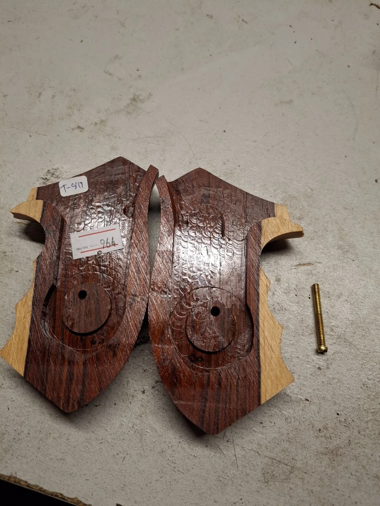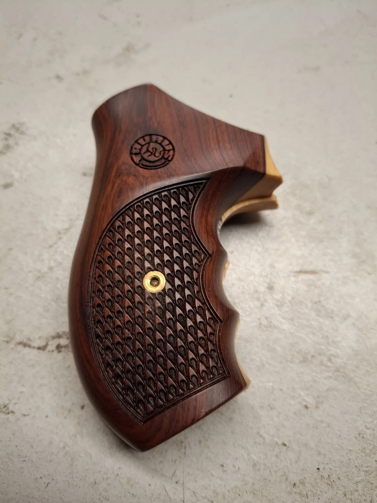 Enhance your Taurus Judge's handling and aesthetics with these exquisite wooden grips. Crafted with attention to detail, the grips feature a rich brown hue that not only adds a touch of elegance but also provides a secure and comfortable grip. Designed specifically for the Taurus Judge, these grips are a perfect fit, ensuring a seamless integration with your firearm. The grips are constructed from high-quality wood, offering both durability and a classic look that is sure to appeal to pistol enthusiasts. Whether you're headed to the range or out on a hunting trip, these grips are an excellent choice for those seeking to personalize their Taurus Judge while maintaining the gun's original integrity.