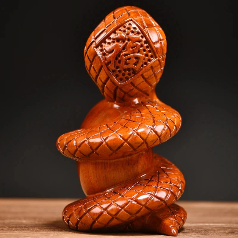 Attractive Aesthetic The golden color of the cobra figurine adds an attractive aesthetic to your space, creating a focal point that draws attention. Perfect Gift With its symbolic significance, this figurine makes an excellent gift for friends, family, or colleagues during special occasions. Versatile Decoration Ideal for home decoration, this figurine can be placed in living rooms, Buddha halls, or as a standalone piece to enhance the aesthetic appeal. Unique Design The Lucky Snake Symbol of the Year Figurine features a golden wood cobra, a unique design that adds a touch of elegance to any room. Quality Material Crafted from high-quality materials, the figurine ensures durability and longevity, making it a worthwhile investment for collectors and enthusiasts. Size: 8cm 12cm 14cm 18cm 24cm , you can choose it you like