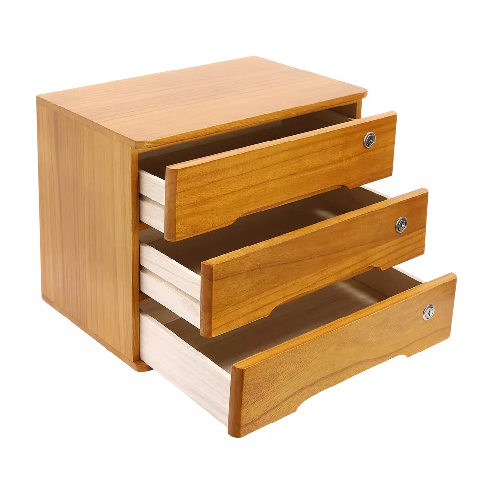 Wooden Desktop Storage Cabinet Desktop Storage Box with Lockable Drawers New Description Do you feel annoyed by too many items on your desktop that are cluttered and unorganized? Our 3-tier storage cabinet can help you solve this problem. This product is made of high-quality material, which ensures a long service life. The 3 drawers are convenient for you to organize different daily items, and the locking design effective ly protects your privacy. It can effectively help you reduce the pressure on your countertop, which is an ideal choice for you. Key Features Good Material: This product is made of high-quality tung wood with a spray painting process, which is hard, strong, anti-corrosion , not easy to deform, and has a long service life. Categorized Storage: The product has 3 drawers, so you can categorize and store your items in different drawers to give your desktop a neat look. In addition, the top can also be used to hold items, allowing you to maximize the use of your space. Protect Your Privacy: This product features the locking design that locks the drawer and can only be opened with the included key to protect your property. Strong Load-bearing Capacity: High-quality material and stable construction give the product a weight capacity of about 66.14 lbs , so you can store items on it with confidence. Save Space: This product is small in size ( 15.75*11.02*12.2 in) , fully utilizing vertical space, thereby reducing the burden on the countertop. Ready to Use: This product does not require assembly, and you can start using it once you receive it, saving the tedious installation process and making it more convenient. Effortless Cleaning: Thanks to the smooth surface and simple construction, you can easily wipe off the dirt on it with a soft cloth. Thoughtful Gift: This is an ideal gift for colleagues, friends, and family to help them organize their belongings and keep their desks tidy. Good Customer Service: We stand behind all our guests and look forward to assisting you with your purchase. It is our pleasure to answer your confusion and questions. The end of the story between us is not "we sell and you buy". Details Comfortable Handles: Each drawer has an ergonomic handle that is not only comfortable but also easy for you to pull the drawer. Smooth Edge: The rounded and smooth edges not only add to the aesthetics of the product but also improve the safety of use. Anti-slip Pad: It can keep the product stable and less likely to slip off while you use it. Application This product can be used in an office, study, bedroom, dresser, kitchen, etc. It is suitable for organizing documents, files, pens, notebooks, handy stickers, remote controls, staplers, cosmetics, greeting cards, tickets, business cards, stationery, jewelry, hair accessories, and so on. Specification Color: Wood Yellow Shape: Rectangle Style: Modern Material: Tung Wood Process: Spray Paint Assembly Required: No Number of Tiers: 3 Number of Locks: 3 Number of Keys: 6 Max. Load Capacity: About 30kg/ 66.14 lbs Gross Weight: 5kg/ 11.02 lbs Package Size: 45*33*36 cm/ 17.72*12.99*14.17 in Product Size: 40*28*31 cm/ 15.75*11.02*12.2 in Package Included 1* 3-Tier Storage Cabinet 6* Keys 4* Anti-slip Pads Notes Please allow the slight color difference caused by the shooting light and the 1-3 cm error due to manual measurement, and make sure you do not mind before ordering. Payment Delivery details Terms of sales About us Contact us Payment We accept ebay payment 。 Fees such as import duties, taxes are not included in the item price or shipping costs. These charges are the buyer's responsibility. Delivery details Shipping: 2-9 working days to: USA Terms of sales We maintain high standards of excellence and strive for hundred percent customer satisfaction. Feedback is very important to us. We hope that you contact us immediately before you give neutral or negative feedback, so that we can address your concerns. It is impossible to address issues if we do not know about them! About us Your satis faction is our ultimate goal. We work hard to earn your trust and future business. Our certified technicians have tested each item before shipping. The unit comes with 1 year limited warranty on all manufacturing defects. a) If you receive a defective item, you may return it or ask for a discount. Please contact us within 14 days after you receive the package. b) What you returned must be intact and in its original packaging as re? u. Customer is responsible for shipping costs of the returned item. c) We will cover the cost of shipping back t with the shipping rate indicated in the registration page. We will send you a new unit or refund the full payment you paid. Thank you. Contact us Business Hour Business Hour: Monday To Friday: 8:30 AM to 5:00 PM (Beijing China time) Due to time zones, our reply to your questions may not be immediately. But within above working time, we will reply your email within 24 hours. If it's non-workdays, please kindly be patient and wait till Monday. Please contact us with ebay message. Please feel free to contact us if you have any questions. Monday To Friday: 8:30 AM to 5:00 PM (Beijing China time) Due to time zones, our reply to your questions may not be immediately. But within above working time, we will reply your email within 24 hours. If it's non-workdays, please kindly be patient and wait till Monday. Please contact us with ebay message. Please feel free to contact us if you have any questions. On Mar 5, 2025 at 18:42:38 PST, seller added the following information: