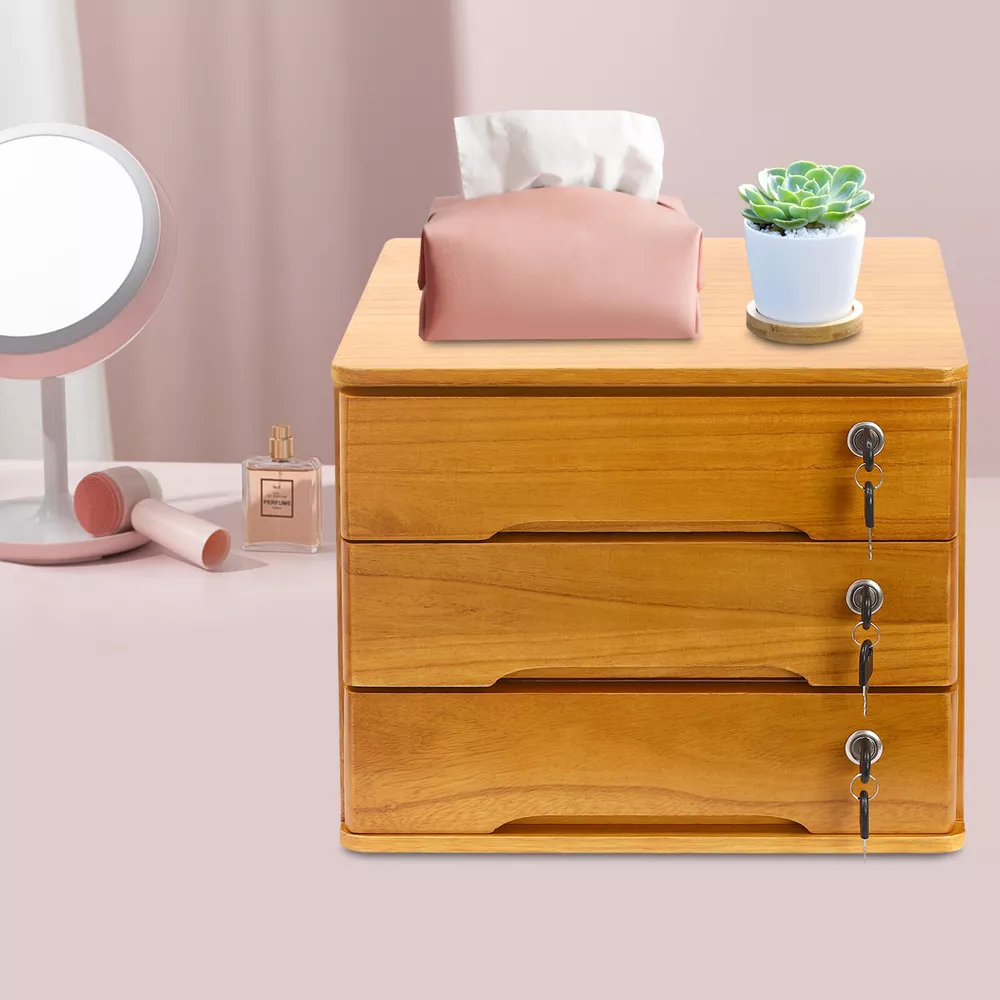 Description Do you feel annoyed by too many items on your desktop that are cluttered and unorganized? Our 3-tier storage cabinet can help you solve this problem. This product is made of high-quality material, which ensures a long service life. The 3 drawers are convenient for you to organize different daily items, and the locking design effectively protects your privacy. It can effectively help you reduce the pressure on your countertop, which is an ideal choice for you. Key Features Good Material: This product is made of high-quality tung wood with a spray painting process, which is hard, strong, anti-corrosion, not easy to deform, and has a long service life. Wooden Desktop Storage Cabinet Desktop Storage Box with Lockable Drawers Description Do you feel annoyed by too many items on your desktop that are cluttered and unorganized? Our 3-tier storage cabinet can help you solve this problem. This product is made of high-quality material, which ensures a long service life. The 3 drawers are convenient for you to organize different daily items, and the locking design effective ly protects your privacy. It can effectively help you reduce the pressure on your countertop, which is an ideal choice for you. Key Features Good Material: This product is made of high-quality tung wood with a spray painting process, which is hard, strong, anti-corrosion , not easy to deform, and has a long service life. Categorized Storage: The product has 3 drawers, so you can categorize and store your items in different drawers to give your desktop a neat look. In addition, the top can also be used to hold items, allowing you to maximize the use of your space. Protect Your Privacy: This product features the locking design that locks the drawer and can only be opened with the included key to protect your property. Strong Load-bearing Capacity: High-quality material and stable construction give the product a weight capacity of about 66.14 lbs , so you can store items on it with confidence. Save Space: This product is small in size ( 15.75*11.02*12.2 in) , fully utilizing vertical space, thereby reducing the burden on the countertop. Ready to Use: This product does not require assembly, and you can start using it once you receive it, saving the tedious installation process and making it more convenient. Effortless Cleaning: Thanks to the smooth surface and simple construction, you can easily wipe off the dirt on it with a soft cloth. Thoughtful Gift: This is an ideal gift for colleagues, friends, and family to help them organize their belongings and keep their desks tidy. Good Customer Service: We stand behind all our guests and look forward to assisting you with your purchase. It is our pleasure to answer your confusion and questions. The end of the story between us is not "we sell and you buy". Details Comfortable Handles: Each drawer has an ergonomic handle that is not only comfortable but also easy for you to pull the drawer. Smooth Edge: The rounded and smooth edges not only add to the aesthetics of the product but also improve the safety of use. Anti-slip Pad: It can keep the product stable and less likely to slip off while you use it. Application This product can be used in an office, study, bedroom, dresser, kitchen, etc. It is suitable for organizing documents, files, pens, notebooks, handy stickers, remote controls, staplers, cosmetics, greeting cards, tickets, business cards, stationery, jewelry, hair accessories, and so on. Specification Color: Wood Yellow Shape: Rectangle Style: Modern Material: Tung Wood Process: Spray Paint Assembly Required: No Number of Tiers: 3 Number of Locks: 3 Number of Keys: 6 Max. Load Capacity: About 30kg/ 66.14 lbs Gross Weight: 5kg/ 11.02 lbs Package Size: 45*33*36 cm/ 17.72*12.99*14.17 in Product Size: 40*28*31 cm/ 15.75*11.02*12.2 in Package Included 1* 3-Tier Storage Cabinet 6* Keys 4* Anti-slip Pads Notes Please allow the slight color difference caused by the shooting light and the 1-3 cm error due to manual measurement, and make sure you do not mind before ordering. Payment Delivery details Terms of sales About us Contact us Payment We accept ebay payment 。 Fees such as import duties, taxes are not included in the item price or shipping costs. These charges are the buyer's responsibility. Delivery details Shipping: 2-9 working days to: USA Terms of sales We maintain high standards of excellence and strive for hundred percent customer satisfaction. Feedback is very important to us. We hope that you contact us immediately before you give neutral or negative feedback, so that we can address your concerns. It is impossible to address issues if we do not know about them! About us Your satis faction is our ultimate goal. We work hard to earn your trust and future business. Our certified technicians have tested each item before shipping. The unit comes with 1 year limited warranty on all manufacturing defects. a) If you receive a defective item, you may return it or ask for a discount. Please contact us within 14 days after you receive the package. b) What you returned must be intact and in its original packaging as re? u. Customer is responsible for shipping costs of the returned item. c) We will cover the cost of shipping back t with the shipping rate indicated in the registration page. We will send you a new unit or refund the full payment you paid. Thank you. Contact us Business Hour Business Hour: Monday To Friday: 8:30 AM to 5:00 PM (Beijing China time) Due to time zones, our reply to your questions may not be immediately. But within above working time, we will reply your email within 24 hours. If it's non-workdays, please kindly be patient and wait till Monday. Please contact us with ebay message. Please feel free to contact us if you have any questions. Monday To Friday: 8:30 AM to 5:00 PM (Beijing China time) Due to time zones, our reply to your questions may not be immediately. But within above working time, we will reply your email within 24 hours. If it's non-wor