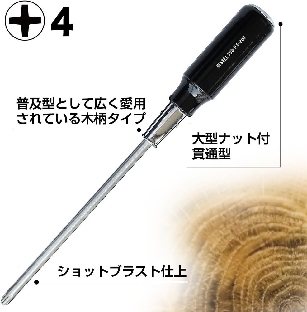 VESSEL Wooden Handle Phillips Screwdriver 5.5×75mm 350mm Shaft