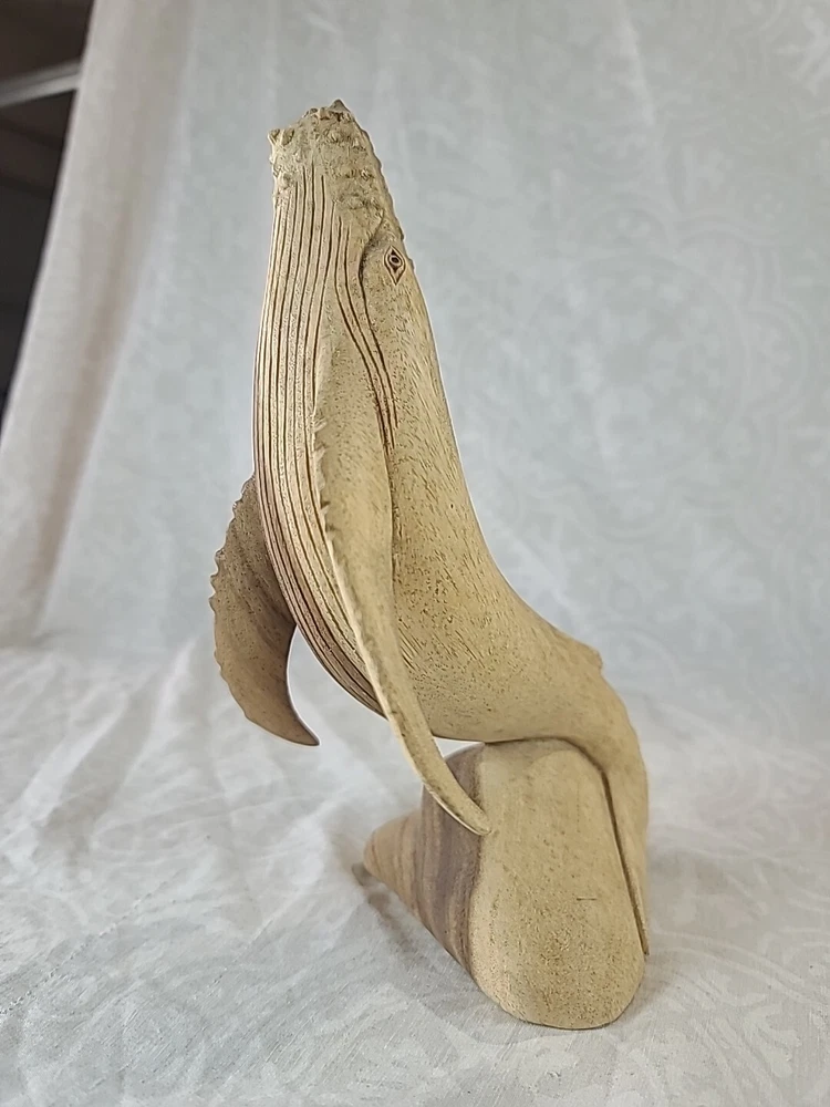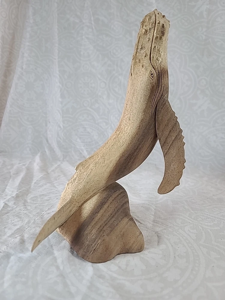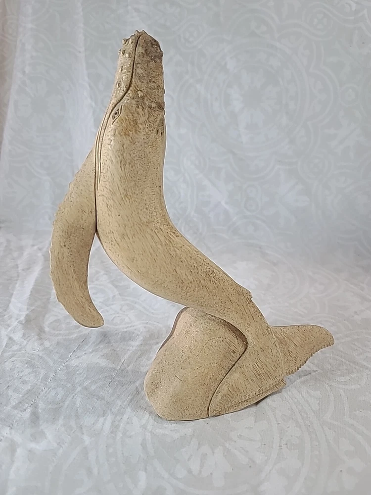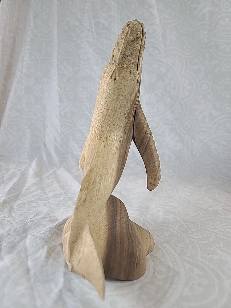 "11×6" inches approximately This beautifully crafted handmade figurine is a stunning piece of art from Indonesia. The sculpture features a majestic mother whale and baby, intricately carved from a single piece of wood. The brown color of the whale and the intricate carvings make it a perfect addition to any home decor. This is a must-have for collectors of figurines and sculptures alike.