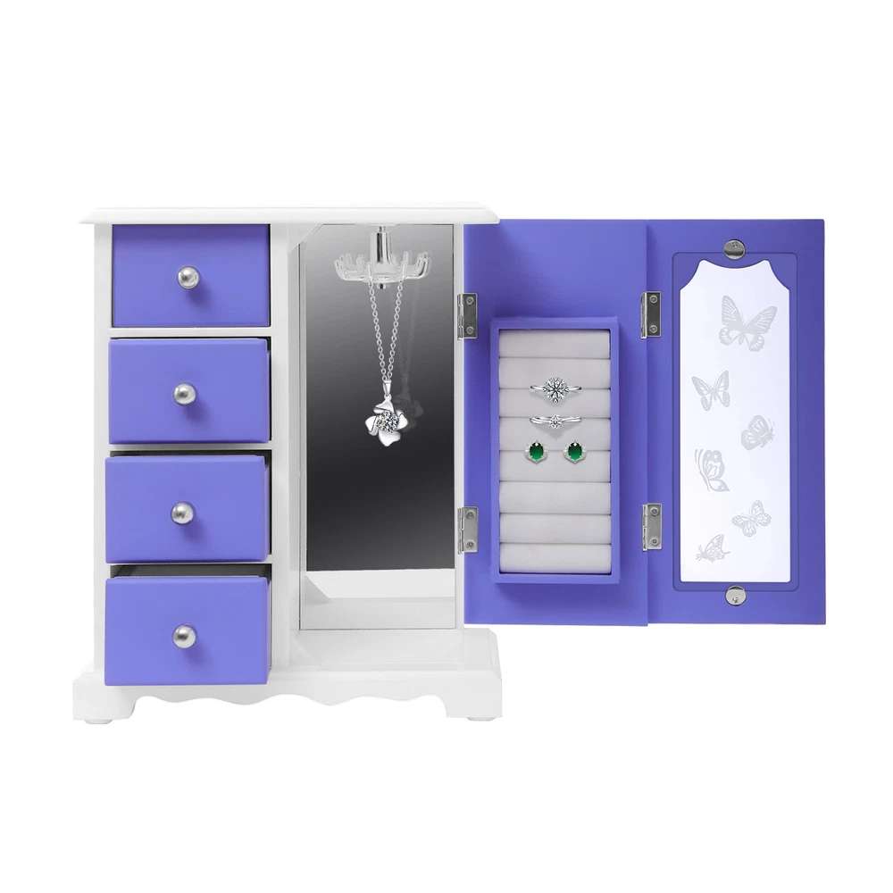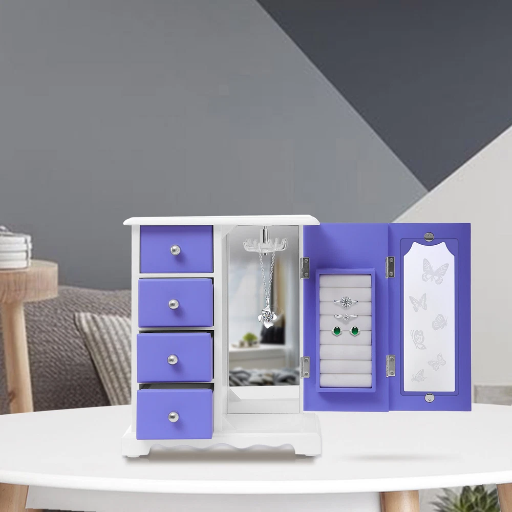 Specification Style: Simple, Modern Material: Mdf, Glass Color: Purple Process: Odorless Paint Number of Drawers: 4 Product Size: 23*13*28.5cm/9*5*11.2in Package Size: 29*18*34cm/11.42*7.09*13.38in Net Weight: 2kg/4.41lbs Gross Weight: 2.4kg/5.29lbs Package Included 1* Jewelry Box Wooden Jewelry Box Butterfly Jewelry Storage CabinetOrganizer & 4 Drawers Mirror Welcom to yybshop06 Description This Jewelry Box Will Keep Your Dresser Organized and save Time Searching for Jewelry. with Its Creative Design and Beautiful Butterfly Pattern, It Will Add a Touch of Character to Your Home. Specification Style: Simple, Modern Material: Mdf, Glass Color: Purple Process: Odorless Paint Number of Drawers: 4 Product Size: 23*13*28.5cm/9*5*11.2in Package Size: 29*18*34cm/11.42*7.09*13.38in Net Weight: 2kg/4.41lbs Gross Weight: 2.4kg/5.29lbs Package Included 1* Jewelry Box Key Features Excellent Material: This Jewelry Box Is Made of High-quality Mdf, Which Is Natural, Renewable, Anti-wear, Rust-resistant, and Has a Long Service Life. Beautiful Appearance : the Creative Look, Butterfly Pattern, Double Door Design, and Purple Color of the Jewelry Box Make It Beautiful and Suitable in Any Setting. Dust-proof and Highly Transparent Glass: This Jewelry Box Has Highly Transparent Glass. the Glass Is Not Only Dust-proof but Also Provides an Unobstructed View of the Interior Which Can Keep the Inside Clean and Help You Quickly Find the Jewelry You Want. 360° Rotatable Hook: This Jewelry Box Has a 360° Rotatable Hook, Which Can Be Freely Rotated for Easy Access to Necklaces and Bracelets. Large Capacity Storage: This Jewelry Box Has a Ring and Earring Area, a Hanging Area Behind the Door, and 4 Drawers. Earrings, Necklaces, Bracelets, Rings, Watches, Lipsticks, Etc. Can All Be Put into This One Organizer, Which Can Meet Your Various Needs and Make Your Dressing Table Tidier and Neater. Double Door Design: This Jewelry Box Is a Double Door Design, There Is a Large Opening, Which Is Easy for You to Take Earrings, Necklaces, Bracelets, and Rings. Sorted Storage: This Jewelry Box Has 4 Drawers That Allow You to Sort Your Items to Make Your Room Tidier and Easy to Find the Things You Need. Space Saving: with Its Footprint of 9*5in, This Jewelry Box Takes up a Small Area. Since It Makes Use of Vertical Space, Not Only Will It Not Waste Your Dressing Table, but It Will Also Provide You with More Storage Space. Built-in Mirror : This Jewelry Box Case Has a Built-in Mirror. You Only Need to Open the Box to Use It, Which Is Very Convenient for You to Wear Jewelry and Does Not Take up Much Space. Earrings and Rings Storage Area: This Storage Area Is Equipped with Soft Velvet to Protect the Jewelry from Wear and Tear Which Is Very Thoughtful. Wonderful Gift: Our Jewelry Box Is an Ideal Gift for Your Wife, Daughter, Girlfriend, or Make-up Lovers on Birthdays, Anniversaries, and Christmas, Because It Is Not Only Useful but Also a Great Decoration. Easy to Clean: Because of Its Smooth Surface, You Only Need to Wipe It with a Cloth, and Then It Will Shine like a Brand-new One. Customer Service: We Aim to Provide Quality Products and Services. If You Have Any Problems, Please Feel Free to Contact Us. We Will Reply and Solve the Problem for You As Soon As Possible. Details Anti-slip Footbeds : This Jewelry Box Has Four Anti-slip Footbeds on the Bottom, Which Allows You to Keep It Stable While Using It for Your Convenience. 4 Drawers: the 4 Drawers of This Jewelry Box Not Only Provide More Storage Space but Also Protect Privacy. Silver Handles: Each Drawer Has a Silver Handle That Is Round and Smooth for Easy Access and Embellishes the Jewelry Box. Every Time You Open the Box Is a Ritual Enjoyment. Odorless Paint: This Jewelry Box Adopts Odorless Paint Which Is Odorless, Does Not Fade, and Has Bright Colors. Plating Hardware : the Plating Hardware of This Jewelry Box Will Not Fade or Rust Which Increases the Service Life. Application It Is Suitable for the Bathroom, Bedroom, Dressing Table, and Make-up Store to Place Necklaces, Rings, Earrings, Bracelets, and Other Make-up Items, Making Your Dressing Table Neater and Tidier. Notes Please Allow the Slight Color Difference Caused by the Shooting Light and 1-3 Cm Error Due to Manual Measurement, and Make Sure You Do Not Mind Before Ordering. Payment Delivery details Terms of sales About us Contact us Payment We accept ebay payment 。 Fees such as import duties, taxes are not included in the item price or shipping costs. These charges are the buyer's responsibility. Delivery details Shipping: 2-9 working days to: USA Terms of sales We maintain high standards of excellence and strive for hundred percent customer satisfaction. Feedback is very important to us. We hope that you contact us immediately before you give neutral or negative feedback, so that we can address your concerns. It is impossible to address issues if we do not know about them! About us Your satis faction is our ultimate goal. We work hard to earn your trust and future business. Our certified technicians have tested each item before shipping. The unit comes with 1 year limited warranty on all manufacturing defects. a) If you receive a defective item, you may return it or ask for a discount. Please contact us within 14 days after you receive the package. b) What you returned must be intact and in its original packaging as re? u. Customer is responsible for shipping costs of the returned item. c) We will cover the cost of shipping back t with the shipping rate indicated in the registration page. We will send you a new unit or refund the full payment you paid. Thank you. Contact us Business Hour Business Hour: Monday To Friday: 8:30 AM to 5:00 PM (Beijing China time) Due to time zones, our reply to your questions may not be immediately. But within above working time, we will reply your email within 24 hours. If it's non-workdays, please kindly be patient and wait till Monday. Please contact us with ebay message. Please 
