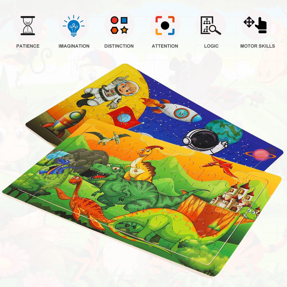Store New Arrivals Add to Favorite View Feedback Contact Wooden Puzzles Toys for Kids Ages 4-6, Set of 3 Packs with 60-Piece Wood Jigsaw Description Item Weight 13.4 ounces Product Dimensions 11.8 x 7.9 x 0.59 inches Manufacturer recommended age 36 months - 8 years Manufacturer Slotic Educational and Entertaining: Engage young minds with our Wooden Puzzles, specifically designed for kids ages 4-6. Each puzzle pack contains 60 durable wood pieces, offering hours of educational fun as children explore three captivating themes: Dinosaurs, Animals, and Space. Premium Quality Construction: Crafted from high-quality wood, our puzzles are built to last. The sturdy construction ensures that pieces fit together smoothly, providing a satisfying tactile experience while enhancing fine motor skills and hand-eye coordination. Versatile Learning Tools: These puzzles go beyond mere entertainment. They serve as valuable learning tools, promoting cognitive development and problem-solving abilities. As children assemble intricate scenes of dinosaurs roaming the earth, animals in their habitats, or astronauts exploring the cosmos, they're actively learning and expanding their knowledge base. Ideal for Growing Minds: Our puzzles cater to a wide age range, making them perfect for kids aged 3 to 8 years old. With varying difficulty levels and themes, they grow with your child, offering new challenges and opportunities for learning as they develop and mature. Perfect Gifts for All Occasions: Whether for birthdays, holidays, or just because, our Wooden Puzzles make thoughtful and engaging gifts for boys and girls alike. Spark their imagination and encourage creativity with these timeless toys that provide endless entertainment and educational benefits. Step into a world of imagination and learning with our Wooden Puzzles for Kids Ages 4-6! This set features three packs, each containing 60-piece wood jigsaw puzzles themed around Dinosaurs, Animals, and Space. Crafted from premium wood, these puzzles are built to withstand the rigors of playtime while offering endless entertainment. Designed to stimulate young minds, our puzzles promote cognitive development, hand-eye coordination, and problem-solving skills. As children piece together vibrant scenes of prehistoric creatures, celestial bodies, and adorable animals, they embark on a journey of discovery and exploration. Ideal for boys and girls aged 3 to 8 years old, our Wooden Puzzles make perfect gifts for birthdays, holidays, or any occasion. Fuel their curiosity and creativity with these engaging puzzles, designed to inspire learning through play. Upgrade playtime with our Wooden Puzzles for Kids Ages 4-6 today! ABOUT US We offer the best prices around on high quality products. Our E-store includes media such as books, movies, music and games while offering electronics, toys, sporting apparel, clothing, tools, general home, garden items and more. SHIPPING We are always working hard to ensure your package arrives as soon as possible. Please understand that some factors like weather, high postal traffic, and the performance of shipping companies are outside of our control. We offer free shipping to the lower 48 states and ship within 2 business days of payment, usually sooner. We do not accept P.O. Boxes. Please provide a physical address. RETURNS We offer a 30-Day Return Policy on items which you are not completely satisfied with. You have the option for a full-refund or an exchange of the item. No returns are available on items shipped outside of the USA. PAYMENT We accept PayPal. CONTACT US This page content is yet to come Please ad us to your favorite seller and visit again later Thank You CUSTOMER SATISFACTION We try our very best to make sure every customer is completely satisfied. If there's a problem, message us! We're happy to help.