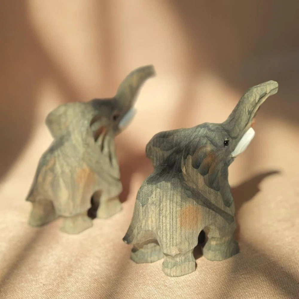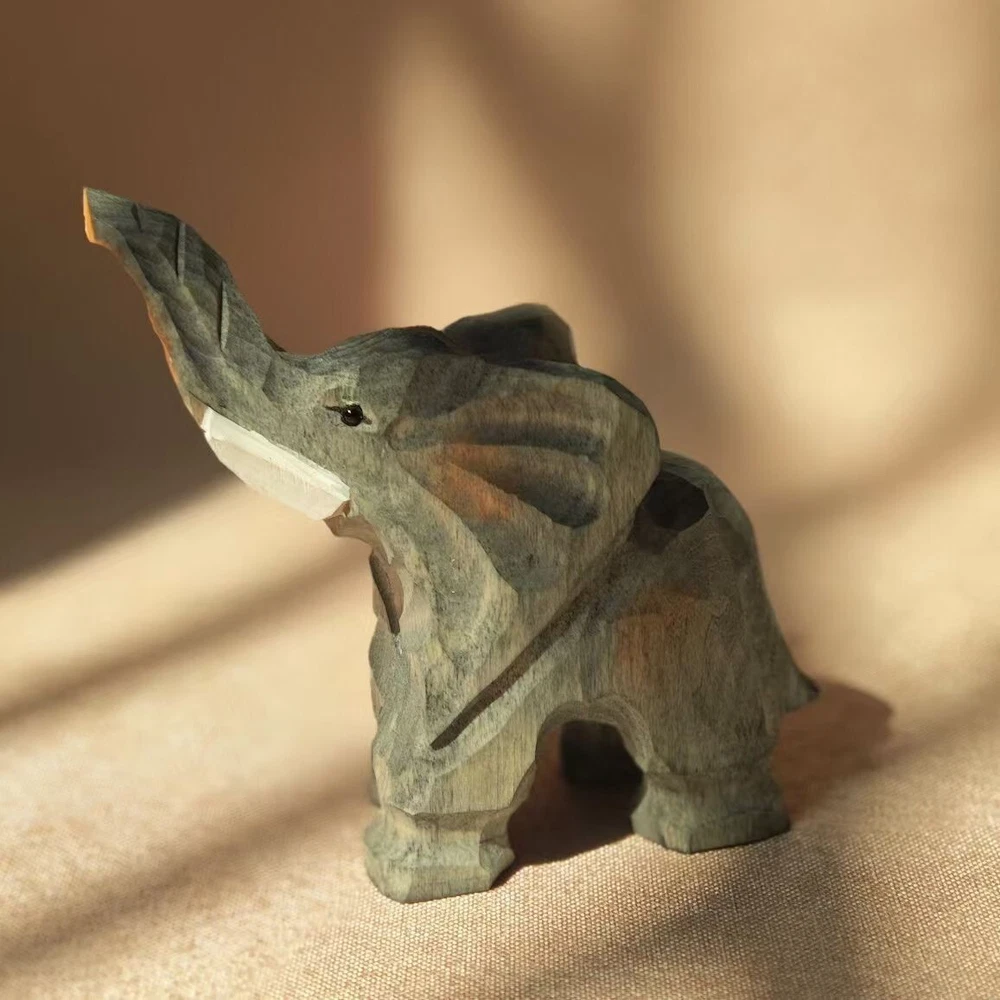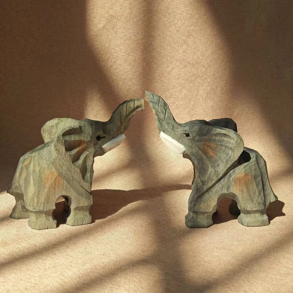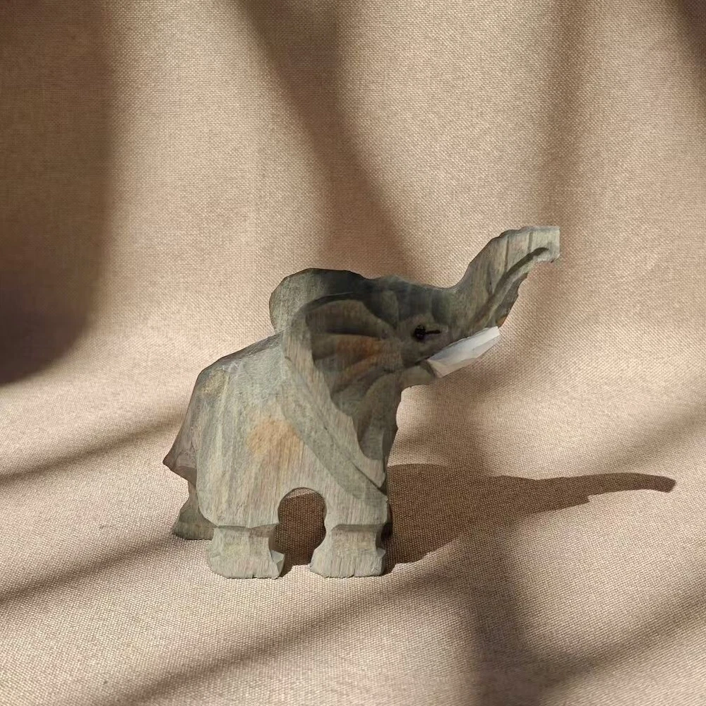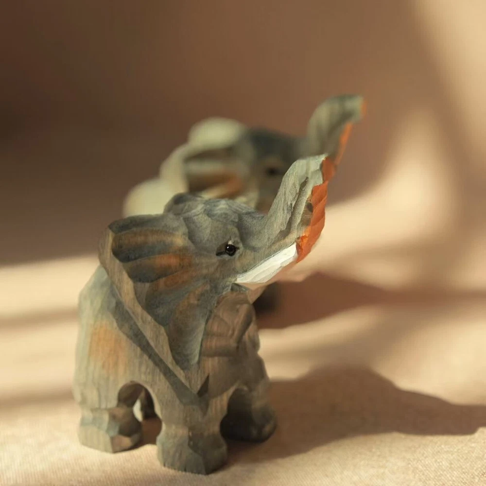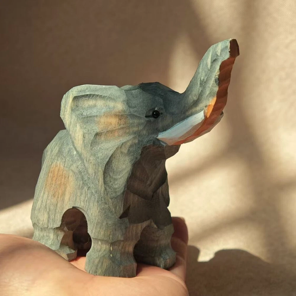 Crafted from natural wood, this hand-carved and hand-painted elephant figurine is a beautiful decorative piece. Each piece is unique, with slight variations due to the artisanal process, adding to its charm. Dimensions are approximately 9 cm (length) x 4 cm (width) x 10 cm (height). Minor imperfections may be present as part of the artistic style, making each piece one-of-a-kind. Thank you for your understanding.