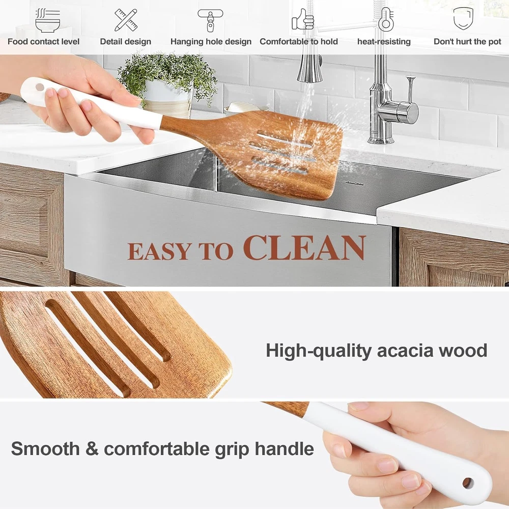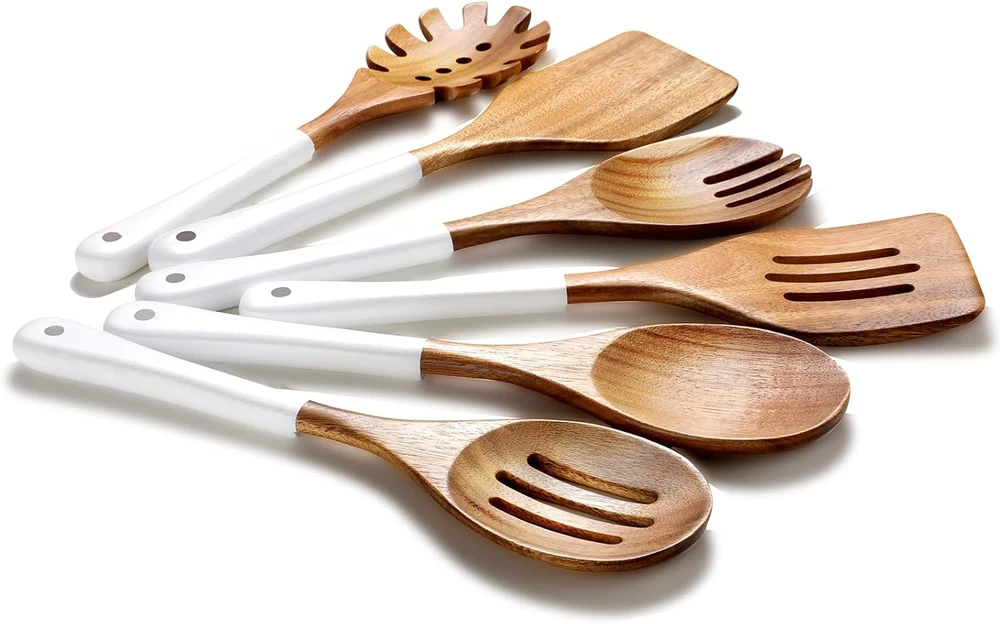 Store New Arrivals Add to Favorite View Feedback Contact Wooden Spoons for Cooking, 6 Pieces Natural Acacia Wooden Cooking Utensils or Non-Stick Wooden Kitchen Utensil Set for Kitchen Essentials, Wooden Cooking Utensils Set with Hanging Hole, White Description Color White Material Acacia Wood Material Type Acacia Wood Is Dishwasher Safe No Material Type Free Free of any materials other than Acacia Wood Number of Pieces 6 Is the item dishwasher safe? No Size 6 PCS SET Wooden Kitchen Utensil Set: Wooden utensil set made from high quality acacia wood, 6 pieces of wooden cooking utensils includes spasta server, wooden spoon, salad fork, slotted spatula, slotted spoon, wooden spatula.Our wooden spatula for cooking will cover all your basic cooking needs. Non-Scratch & Heat-Resistant: Safe to use on all types of cookware, including non-stick surfaces, preventing scratches and extending the life of your pots and pans. Designed to withstand high temperatures, these wood utensils set won't melt or warp, ensuring they remain functional and safe to use while cooking. Innovative Notch Design on the Back of Wood Cooking Utensils Set: The unique notch design on the back of the wooden spatula ensures it rests securely on the edge of pots and pans, preventing it from slipping into the food or onto the countertop. Ergonomic Design & Smooth Polish Surface: With hand polished craftsmanship, makes the wooden cooking utensils set surface smoothly and without burrs, Each utensil features a comfortable, easy-to-grip handle, ensuring a pleasant cooking experience and reducing hand fatigue during extended use. Easy to Clean and Healthy: Hand wash, please clean the wooden kitchen utensils set and dry it when receiving. If the wood spoons for cooking are stained with food, just put them in the water for a while and then wash them. When not in use, please store the wood kitchen utensils set in a dry place. Product Description ABOUT US We offer the best prices around on high quality products. Our E-store includes media such as books, movies, music and games while offering electronics, toys, sporting apparel, clothing, tools, general home, garden items and more. SHIPPING We are always working hard to ensure your package arrives as soon as possible. Please understand that some factors like weather, high postal traffic, and the performance of shipping companies are outside of our control. We offer free shipping to the lower 48 states and ship within 2 business days of payment, usually sooner. We do not accept P.O. Boxes. Please provide a physical address. For shipping outside of the continental USA, we only use eBay's Global Shipping Program.The item is shipped to KY and then sent to the rest of the world. International customers are responsible for all duties and taxes. Continue to check out in order to calculate costs for shipping the item to your country. Messages regarding eBay's Global Shipping Program MUST be directed at eBay EXCLUSIVELY. RETURNS We offer a 30-Day Return Policy on items which you are not completely satisfied with. You have the option for a full-refund or an exchange of the item. No returns are available on items shipped outside of the USA. PAYMENT We accept PayPal. CONTACT US This page content is yet to come Please ad us to your favorite seller and visit again later Thank You CUSTOMER SATISFACTION We try our very best to make sure every customer is completely satisfied. If there's a problem, message us! We're happy to help. WE ACCEPT Copyright © 2021 AutoDS. | All Rights Reserved