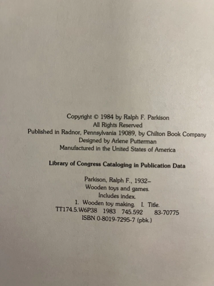 Color: Multicolor Topic: Games Genre: Toys Language: English Author: Ralph F. Parkison Brand: none isbn: 0-8019-7295-7 Book Title: Wooden Toys and Games
