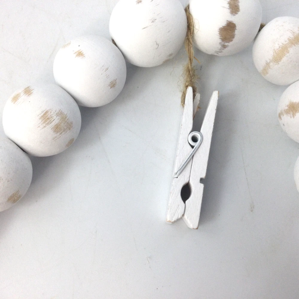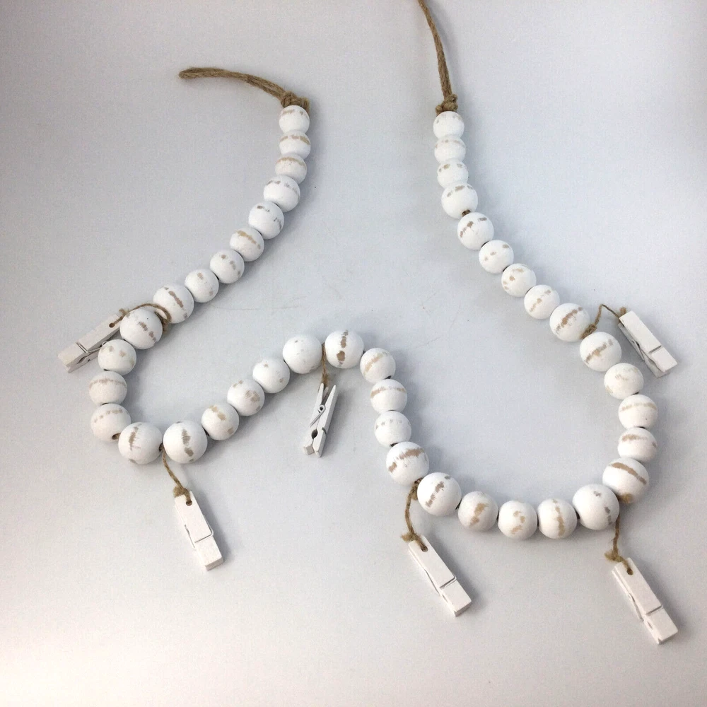 Wooden Wall Hanging Garland White Balls Clips for Photos Pictures 50". 6 clips.Very good condition, no damage. Great for Christmas cards. InvN/GWB/2