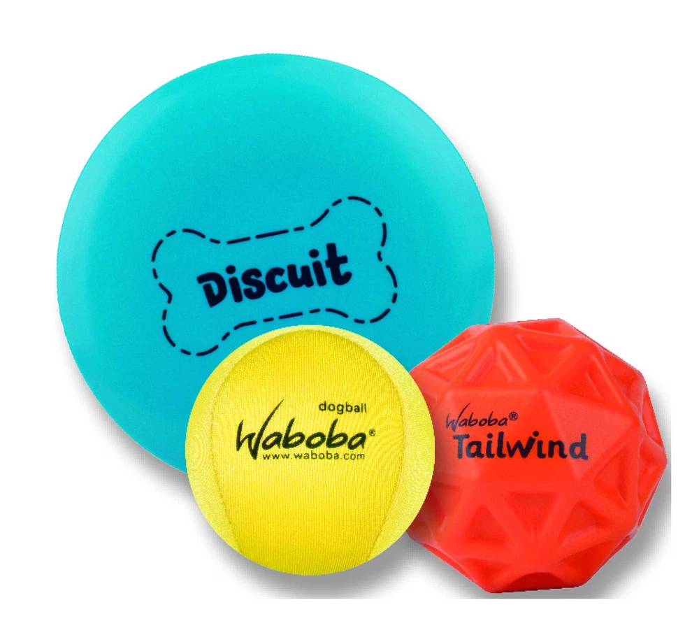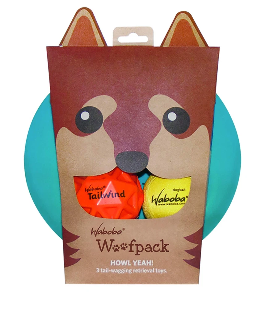 3-IN-1 PACK - Raise the WOOF, take your dog out to play all day! Woofpack includes 3 tail-wagging retrieval toys for air, land and water play. Perfect for puppies and active dogs who love to retrieve! JETWAG DISK – Catch some air! Our Jetwag is a durable, soft rubber frisbee that flies far and high. Suitable for dogs of all sizes to retrieve at the beach, park or garden TAILWIND BALL – Play all day and chase the Tailwind ball! It’s super bouncy and ultra durable with a textured surface for extra grip. A great toy for high energy dogs FETCH BALL – Paws down, the most fun retrieval toy for water-loving dogs! Bounces on water only. Perfect for playing fetch at the beach, lake or river. Dog dreams really do come true! PERFECT GIFT - Our multipack of 3 toys is a great gift to encourage healthy interactions between you and your best friend. Suitable for small, medium and large dogs