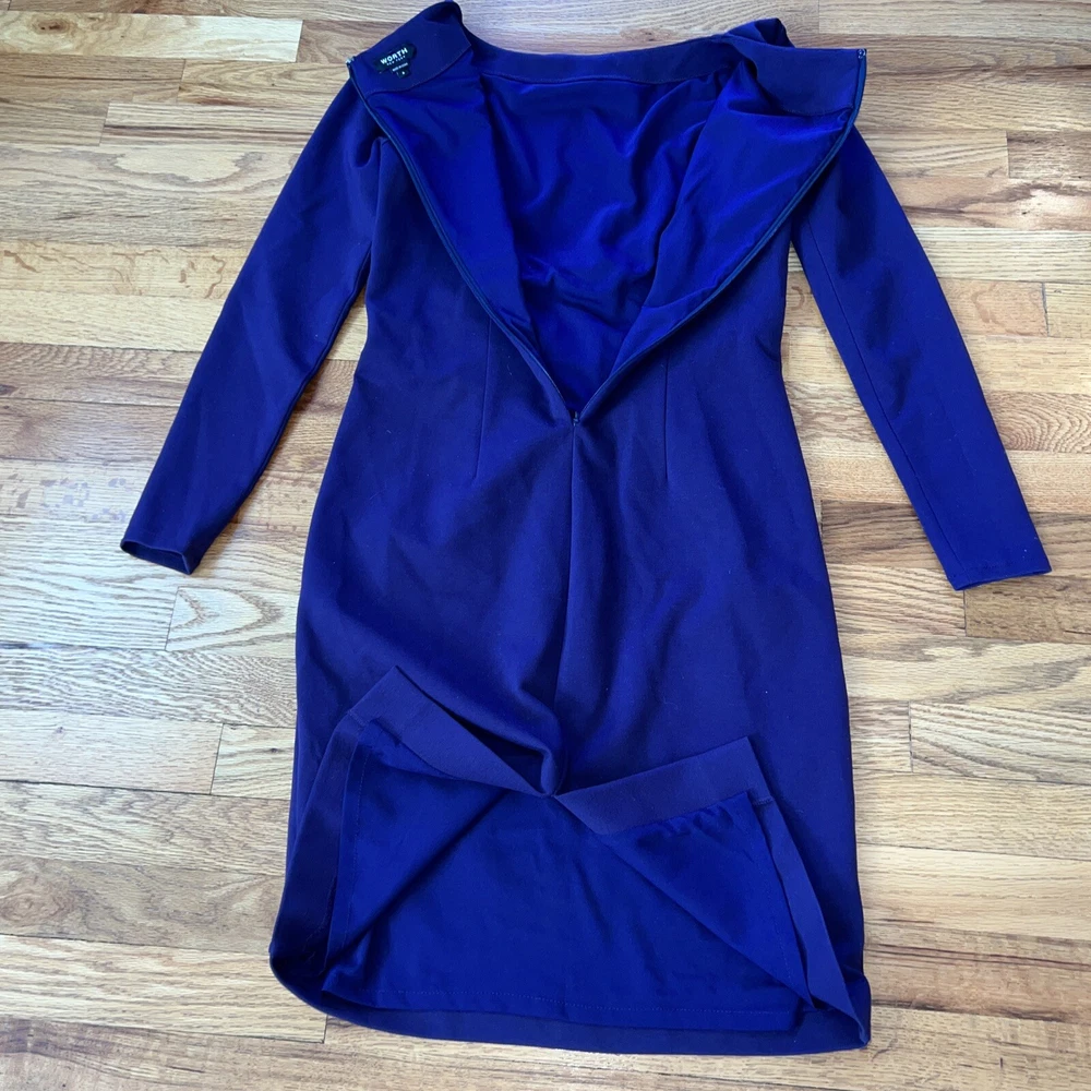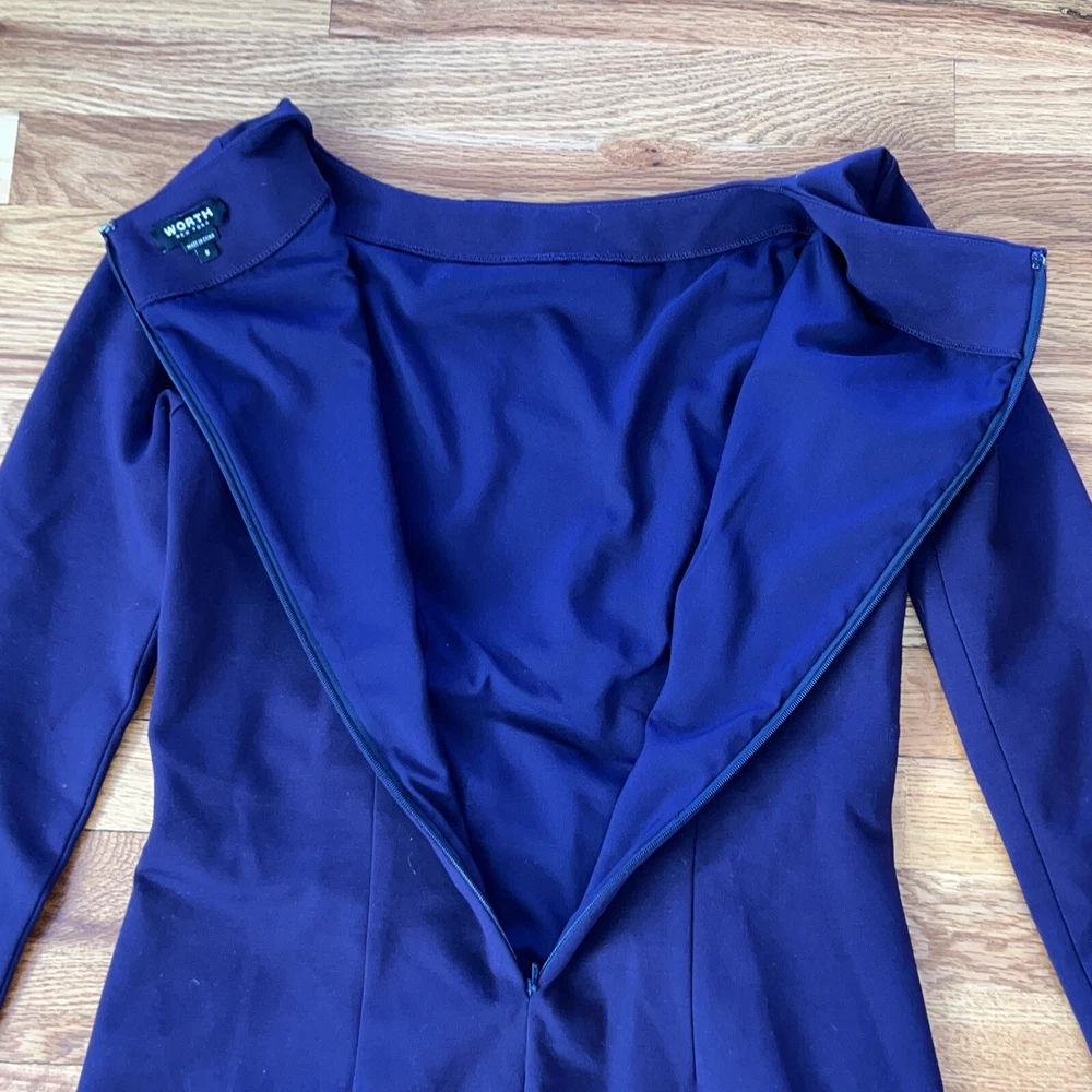 Worth New York Navy Long Sleeve Sheath Faux Wrap Dress Size 6 Grape Violet Lined.