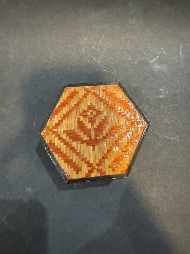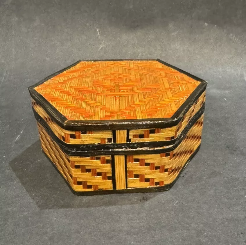 Woven Rattan Wicker Flower Design Trinket Box