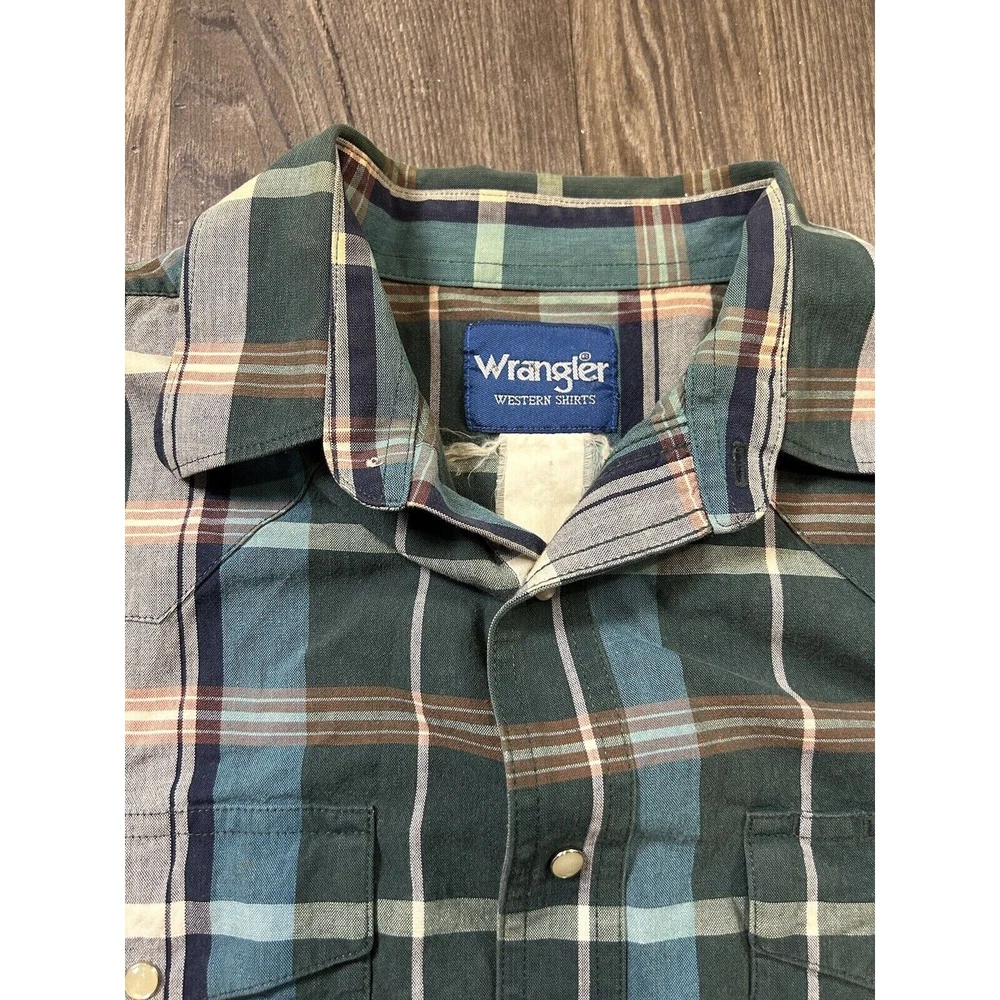 Wrangler Western Pearl Snap Long Sleeve Shirt Blue Plaid Mens Size Small. Condition is Pre-owned. Shipped with USPS Ground Advantage.