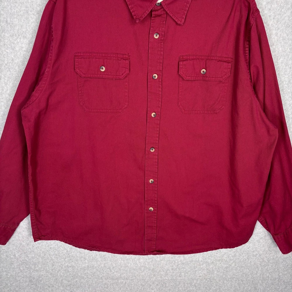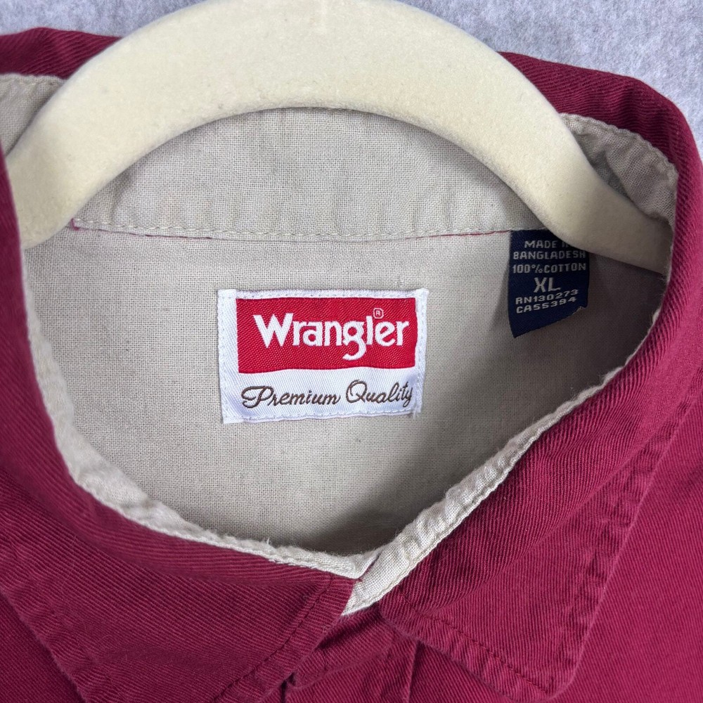 Wrangler Shirt Mens XL Red Button Heavy Cotton Workwear Outdoor Hiking Camping Pre-owned condition: minimal to no signs of wear, small marks on front SKU 5659 **Please see all pictures for full item condition and details** - Ships Same/Next Day, Professional Seller, Offers Welcome, Like or watch for price drops - Item in photos is exact item you will receive - I list new items daily, be sure to browse my store/closet for more items - Bundle pricing and combined shipping available for additional savings - Feel free to send a message
