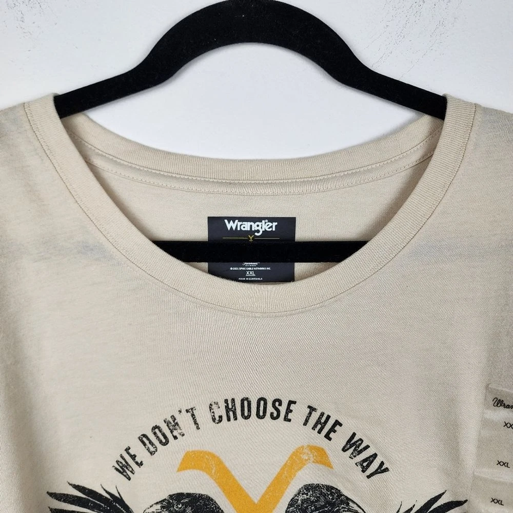 Wrangler Yellowstone Cream Yellowston Graphic T-Shirt Crop Top - New With Tag - Size XXL, see measurements pics, please - Yellowstone Graphics - 50%Cotton, 50% Polyester - Long Sleeve - Detailed Measurements in pics Shipping Same or Next Business Day! Thanks for watching! cotton blend yellowstone Dutton DuttonRanch TVSeries KevinCostner Montana teeTop, casual, levis, yellow red, comfort, cotton top, loungewear