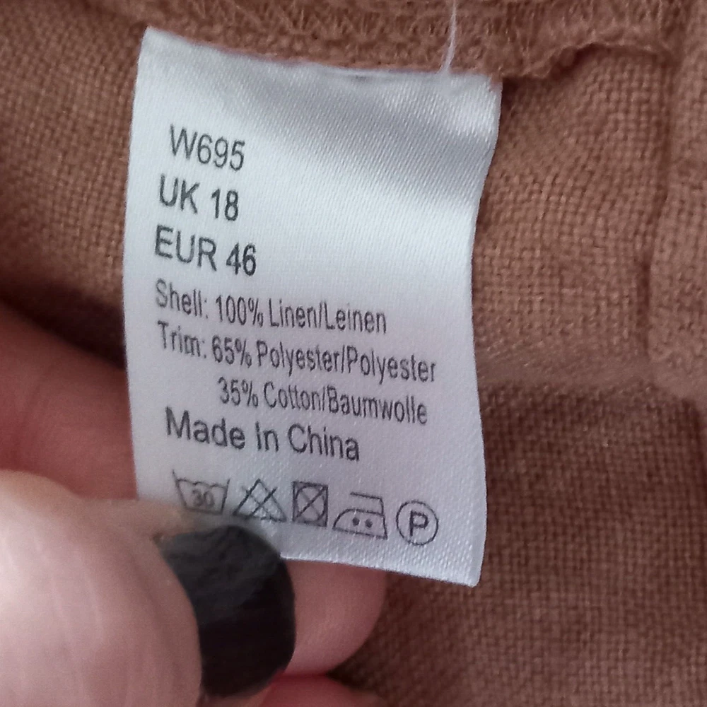 Gently used condition with no faults found. Darker beige colour neutral heavier linen wide leg Lagenlook trouser from WRAP London. Measures 19" across waistband, 13" rise, 24" across hip area approx, 28" inside leg so an ankle length for most. 14" across hems.