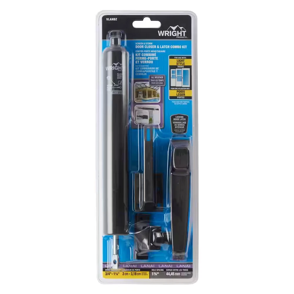 Store New Arrivals Add to Favorite View Feedback Contact Wright Products Storm and Screen Door Hardware Kit Corrosion Resistant Bronze Description Builders Hardware Product Type Screen Accessory Color Bronze Color Family Browns/Tans Hardware Color Family Brown Package Quantity 1 Returnable 90-Day Manufacturer Warranty Limited Lifetime Warranty Product Depth (in) 1.5 in Product Height (in) 4.75 in Product Width (in) 6 in Includes: specialty closer, handle, jamb bracket, and screws For out-swinging doors measuring 3/4 in. to 1-1/4 in. thick Equipped with a built-in anti-lockout feature for safety Lanai door hardware kit is designed for out-swinging light-to-medium weight storm, home, or security doors 3/4"-1 1/4" thick. Includes one V333 push button door latch, one V1020 pneumatic door closer, and one FJBWH Florida door jamb bracket. Use a single pneumatic closer for light to medium weighted doors or paired (one on top and one at the bottom) for heavier storm and screen doors. The door latch features "No lock out" technology, eliminating the worry of accidentally locking yourself out. By using air within the pneumatic tube to cushion the force of the door, it prevents it from slamming and preserves the life of the closer, the door and the door frame. All installation hardware is included. Door latch, pneumatic tube and door jamb attachments come in a high-quality finish to blend in perfectly with the door and frame. Full door kit: Lanai door hardware kit is designed for out-swinging light-to-medium weight storm, home, or security doors 3/4"-1 1/4" thick. Includes one V333 push button door latch, one V1020 pneumatic door closer, and one FJBWH Lanai door jamb bracket. Setup: Each pneumatic door closer measures 12-5/8" long (unextended) and 1-1/2" in diameter. Use a single pneumatic closer for light to medium weighted doors or paired (one on top and one at the bottom) for heavier storm and screen doors. The door latch features "No lock out" technology, eliminating the worry of accidentally locking yourself out. Controlled closing: The fully lubricated spring stretches to allow the door to open a full 90 degrees before it pulls the door closed at a controlled pace. By using air within the pneumatic tube to cushion the force of the door, it prevents it from slamming and preserves the life of the closer, the door and the door frame. External spring helps prevent rod overextension on each open and close. Ready to install: All installation hardware is included, no additional parts need to be ordered or added. Door latch installs in three 5/16" holes and contains two sizes of strike plates and shims to provide adjustment for varying backsets. The latch also has a mounting hole with 1 3/4" spacing. ABOUT US We offer the best prices around on high quality products. Our E-store includes tools, general home, garden items and more. SHIPPING We are always working hard to ensure your package arrives as soon as possible. Please understand that some factors like weather, high postal traffic, and the performance of shipping companies are outside of our control. We offer free shipping to the lower 48 states and ship within 4 business days of payment, usually sooner. We do not accept P.O. Boxes. Please provide a physical address. RETURNS We offer a 30-Day Return Policy on items which you are not completely satisfied with. You have the option for a full-refund or an exchange of the item. No returns are available on items shipped outside of the USA. PAYMENT We accept PayPal. CONTACT US This page content is yet to come Please ad us to your favorite seller and visit again later Thank You CUSTOMER SATISFACTION We try our very best to make sure every customer is completely satisfied. If there's a problem, message us! We're happy to help. WE ACCEPT Copyright © 2017 AutoDs. | All Rights Reserved