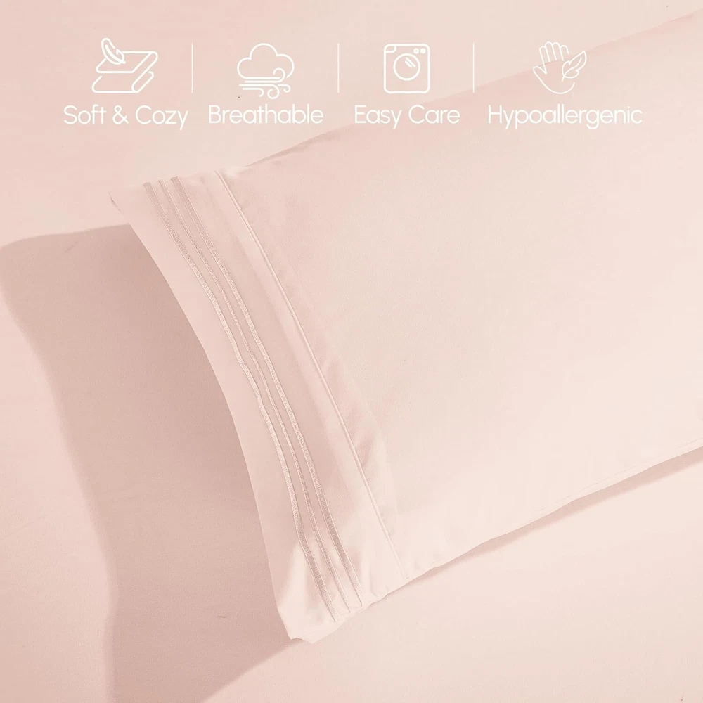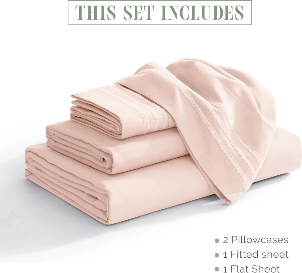 Wrinkle-Resistant Microfiber Sheet Set - Queen, Blush, 4-Piece Luxury Bedding ‹ › ‹ › ‹ › ‹ › ‹ › ‹ › ‹ › ‹ › ‹ › ‹ › Wrinkle-Resistant Microfiber Sheet Set - Queen Color: Blush Set Includes: 4-Piece Luxury Bedding Queen-Size Dimensions: Flat Sheet: 102" x 90" Fitted Sheet: 80" x 60" (fits mattresses 18-24 inches deep) 2 Pillowcases: 20" x 30" Features: SUPERIOR DEEP POCKET DESIGN: Our fitted sheet accommodates mattresses up to 24 inches thick with an all-around sewn-in elastic for effortless application and secure fit. LUXURY MEETS PERFORMANCE: Crafted from finer, longer, and stronger microfiber yarns, our sheets feature a meticulous brushing process that results in an ultra-soft, lustrous finish. VIBRANT, FADE-RESISTANT COLORS: Enjoy sheets that retain their vibrant color and softness even after years of use, thanks to our fade-resistant technology. EASY, ENERGY-EFFICIENT CARE: Simply machine wash on a cold, gentle cycle and tumble dry low. Our sheets are designed to withstand years of use without weakening or tearing. Experience the Difference: Indulge in luxury like never before. These sumptuous sheets feel almost hedonistic, transforming your sleep experience into a realm of decadence. With incredibly soft, wrinkle-free microfiber yarns, you will feel pampered every time you slip between the covers. Choose from a variety of elegant colors, and as morning approaches, you may find it hard to leave the comfort of your bed. Upgrade your bedding with this exquisite microfiber sheet set and embrace the unparalleled comfort and luxury it offers. Care Instructions: Machine wash cold, gentle cycle. Do not bleach. Tumble dry low. Shipping Free & Fast Shipping - We offer free shipping to most of the USA with a normal delivery time of 3-7 days. However, due to the current situation, additional delivery time (up to 3 weeks) may be required for some items. Alternative Carriers - We may use alternative carriers (e.g. USPS, FedEx, UPS, etc.) to ensure your package arrives safely and on time. Due to the use of multiple carriers, we are unable to provide a tracking number automatically. Handling Time - Orders are processed and shipped within 1-2 business days of receiving cleared payment. Shipping Restrictions - Shipping to Alaska, Hawaii, Puerto Rico, Guam, and other US territories may incur shipping charges or delivery restrictions. Please contact us before ordering, or your order can be refunded/cancelled. State Restrictions - There may be restrictions based on your state of purchase. For example, certain items may not be shipped to California due to state regulations. Contact for Tracking Updates - If you require tracking updates or have any concerns about the delivery of your order, please feel free to contact us, and we will be happy to assist you. Return 30-Day Hassle-Free Returns - We want you to be completely satisfied with your purchase. If you are not, you can return the item within 30 days of receiving it for a full refund or exchange. Easy Return Process - To start a return, simply contact us and we will provide you with a prepaid return shipping label and detailed instructions. Restocking Fee - There are no restocking fees for returns. However, the buyer is responsible for return shipping costs if the return is not due to a seller's error. Refund Processing Time - Refunds will be processed within 5 business days of receiving the returned item in its original condition. Payment We accept all major credit cards, PayPal, and Apple Pay for your convenience. Your payment information is secure and encrypted to ensure a safe and seamless transaction. Please complete your payment within 3 days of purchase to avoid any delays in shipping. Feedback Your feedback is extremely important to us. We strive to provide the best products and customer service possible. If you are satisfied with your purchase, please take a moment to leave us a positive review. If you have any concerns or issues with your order, please contact us before leaving negative feedback. We are committed to resolving any problems and ensuring your satisfaction. Contact Us If you have any questions or concerns, please feel free to reach out to our customer support team. You can contact us through the eBay messaging system. We are available Monday to Friday, 9:00 am to 5:00 pm EST, and we will do our best to respond to your inquiry within 24 hours. Buy it now and enjoy a pleasant shopping experience! UPC: Not Set Item Length: Not Set Item Width: Not Set Unit Quantity: 3 Material: Microfiber Character: Not Set Theme: Luxury Care Instructions: Machine Wash,Tumble Dry Features: Breathable,Deep Fitted,Machine Washable,Wrinkle Resistant,Fade Resistant,Skin Friendly Department: Adults Room: Bedroom Labels & Certifications: Not Set Brand: Unbranded Size: Queen Type: Sheet Set Color: Blush Pattern: Solid Character Family: Not Set MPN: Not Set Country/Region of Manufacture: Not Set Thread Count: 150 Style: Modern Shape: Rectangular Model: Not Set GSM (Grams per Square Meter): Below 150 Product Line: Not Set Unit Type: lb