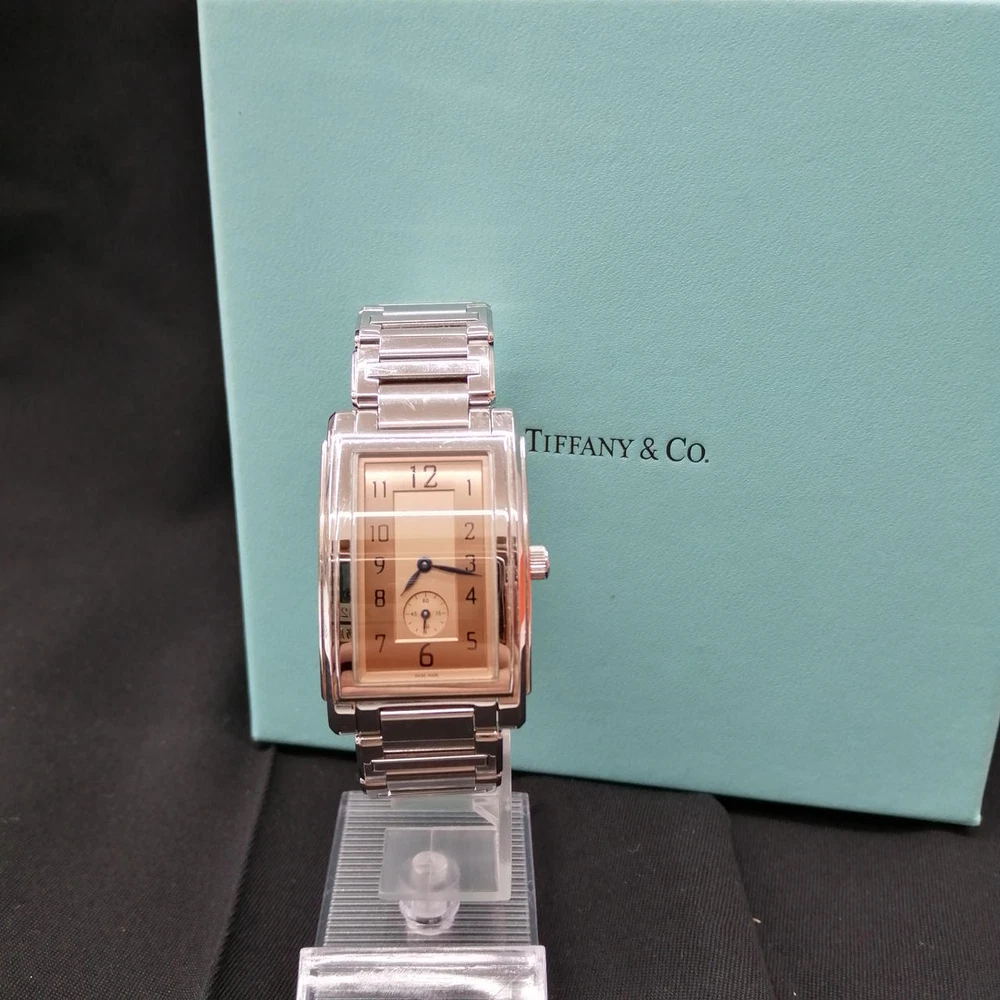 WristWatch GRAND RECTANGULAR SILVER ORANGE SCRATCHED TIFFANY CO. 23