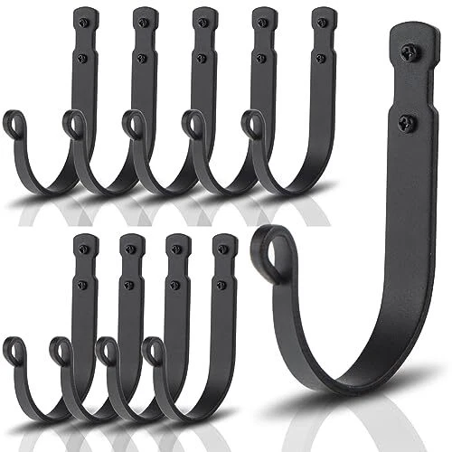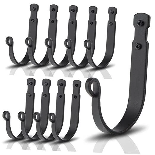Return Policy Fast Delivery Trusted seller Wrought Iron Wall Mounted Hooks Heavy Duty Garage Storage Organizer Decorative Hanger for Home Garage Bathroom Kitchen Door Office Hanging Coat, Keys, Towel, Tools, Bags, Hat (Black) Product Description Heavy Duty Hooks - These wall mounted hooks are made of high quality cast iron material, finished in black matte paint for long lasting use, sturdy construction and holds a lot of heavy things. Hook size about 2.7''x0.7''x4'', 3mm/0.12'' thickness. Help to Stay Organized - Organize your home in style with our wall hooks, keep your entryway tidy, get any room clean and organized without detracting from your room's style. No more rummaged around, save yourself time. One Fits All - Use these decorative wall hooks in your doorway, garage, tool shed, bedroom, hallway, kitchen, patio, garden or cabin to hanging coat, keys, handbag, yard tools, cooking ware, any small object or large items will fits. Surprise yours guests or give this item as a present for Christmas, Birthday, Wedding, Housewarming Party and More. Vintage Craftsmanship & Modern Design - Very well made and delicate designed, matte black finish and a stylish charming look. A simple but elegant home decor for you. Convenient and Easy Use - Attractive design of this item does not make it only a decorative piece. Thicken, rounded edges will not damage your clothes. Easily mount on your wall with screws, Individual hook allows you freely combine these hooks to customize your walls. Shipping Returns Payment Shipping Shipping is FREE to all addresses other than APO/PO boxes in the lower 48 states. All our stock ships from US-based warehouses. Shipped via USPS or UPS (depending on location and package weight) Unless stated otherwise, all orders will ship within 24-72 hours of your payment being processed. Check our feedback to see the great reviews of FAST shipping we offer. Returns Seller does not accept returns Payment We currently accept payment via eBay managed payments only. Once payment is cleared, we will dispatch your shipment within 1-3 business days. Please refer to the "Shipping" tab for more information regarding shipping speed to your destination.