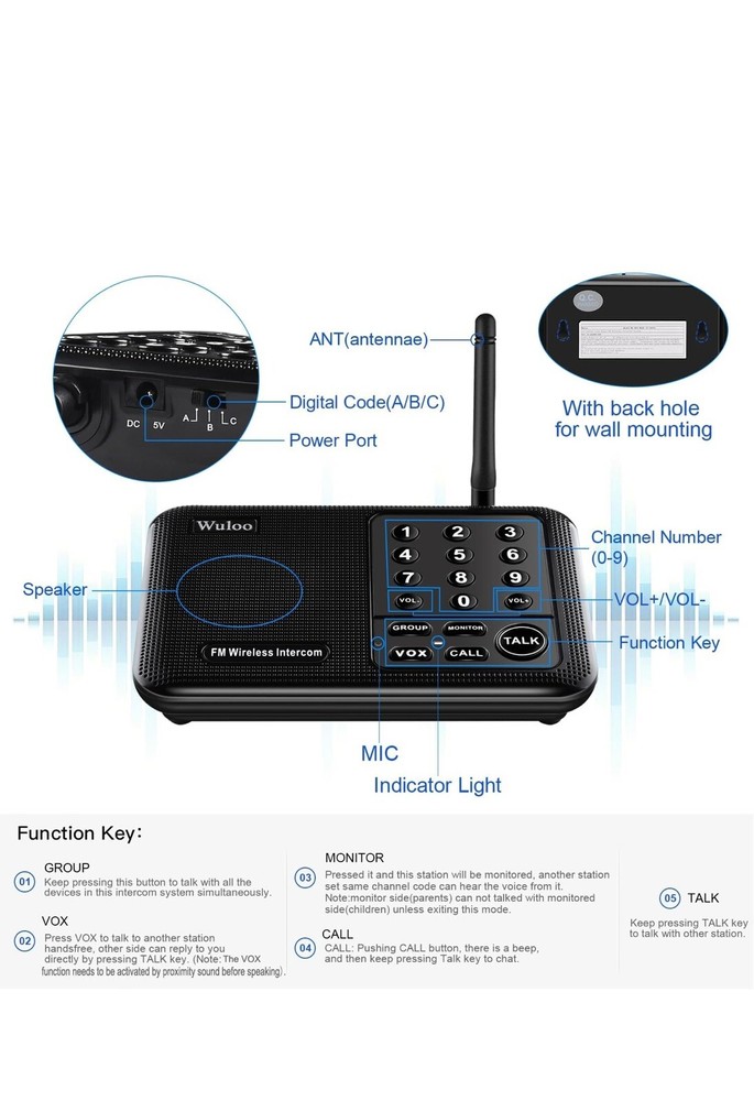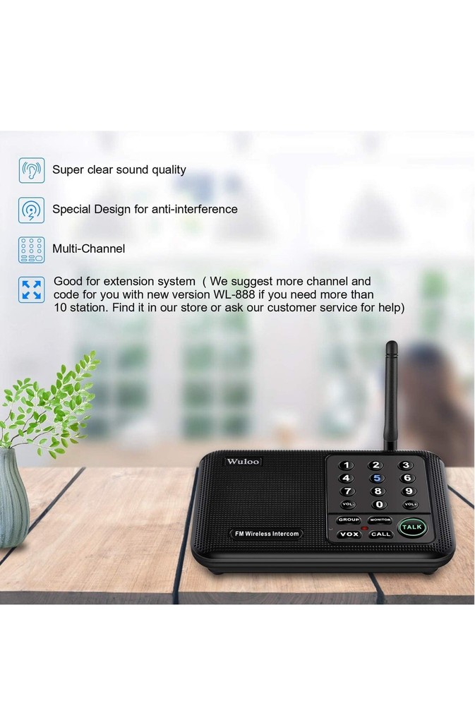 Wuloo Intercoms Wireless for Home 1 Mile (5280 Feet) Range 10 - Channel, Wireless Home Intercom System for House Business Office, Room to Room Intercom, Home Communication System (2 Packs, Black) 269/9821 Rack
