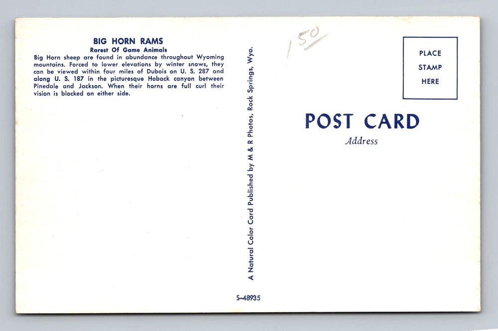 Wyoming WY Big Horn Rams Game Animals Vintage Postcard Souvenir Postal Post PC