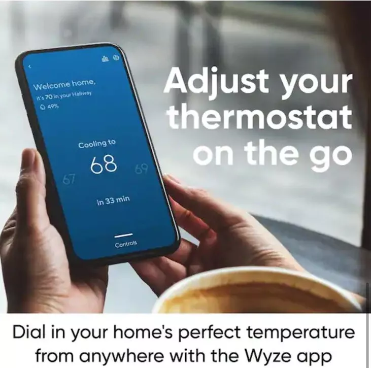 Wyze Thermostat is the simplest and most affordable way to transform your old thermostat into a smart one. Adjust your thermostat on the go or from the comfort of your couch by opening the Wyze app and dialing in the perfect temperature and create schedules for every weekday and weekend. Wyze Thermostat also tracks usage and automatically recommends actionable insights to help you reduce wasted energy. Control from the app: no matter where you are in the world, you're always just a few taps away from dialing in the perfect temperature, arrive home to the perfect temperature / save energy / keep pets comfortable / prevent frozen plumbing Works with voice assistants: when your morning coffee and blanket aren't cutting it, adjust the thermostat with your voice by asking Alexa 7-day scheduling: create schedules for every weekday and weekend so you don't have to keep going back and forth to your thermostat Usage tracking with insights: we'll do the thinking for you, like an energy-saving gnome inside your phone, the Wyze app will recommend actionable insights based on your usage to help reduce wasted energy Easy DIY installation: step-by-step guided installation in the Wyze app, check your home's compatibility on the Wyze website Zero learning curve temperature control: easy control for guests and families, adjusting the temperature is as straightforward and intuitive as walking to the wall and turning the dial Product Information Internet # 315988059 Model # WTHERM Store SKU # 1006106166 E32