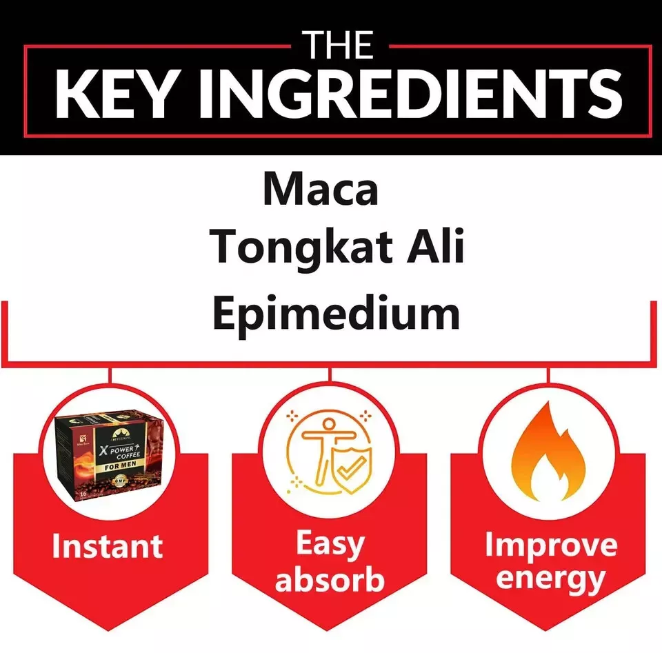 X Power Coffee for Men Herbal Supplement Coffe Energy Maca More Control 16 Bags