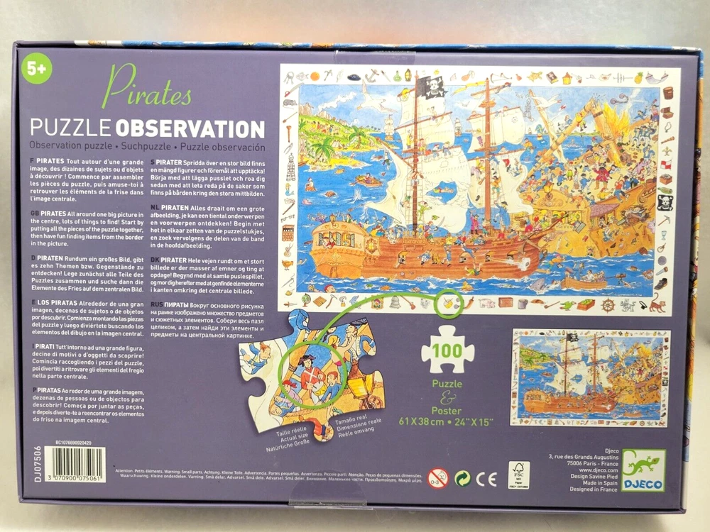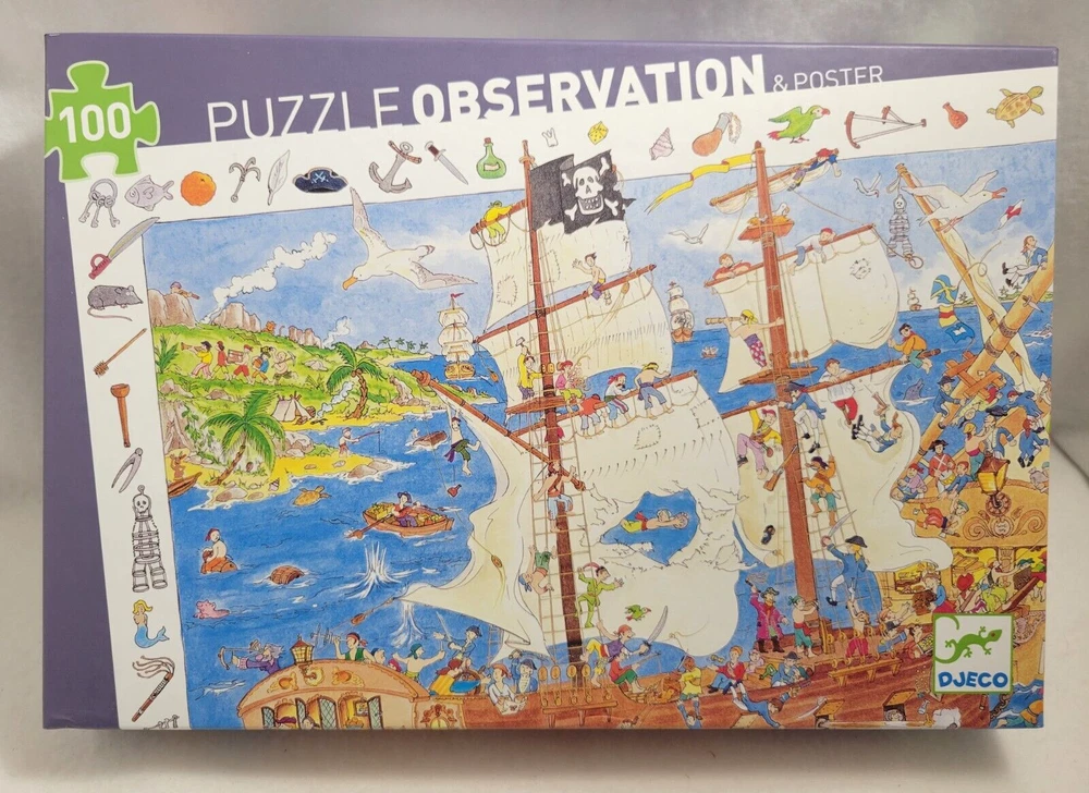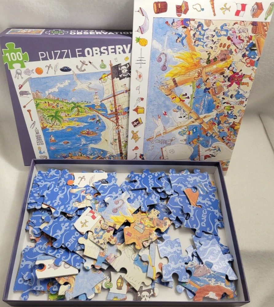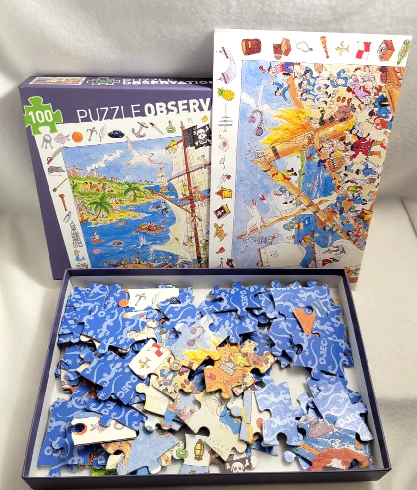 X2 Large Piece 100 piece each Jigsaw Puzzles 6+ Ravensburger Puzzle Cars Fire & Rescue - No Poster DJECO Puzzle Observation & Poster - Pirates / Ship Doing puzzles has some hidden benefits. Excellent qualities : Cultivate concentration, patience, and temper your will Movement development : Train hand-eye coordination and precise small movements Spatial intelligence : Improve visual discrimination of colors and shapes Critical thinking ability : Understand the relationship between parts and the whole, and draw inferences from one example to explore the future Relaxes your mind : Relieve work pressure and release yourself Brain development : Enhance memory and may help prevent or slow brain degeneration Each item is carefully packaged to prevent any damage and is shipped immediately with tracking.