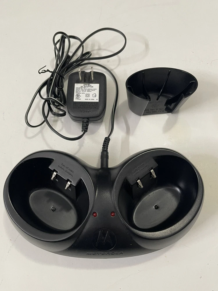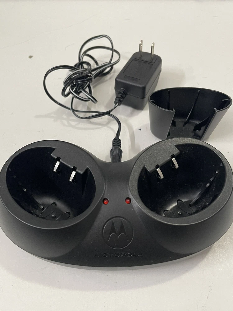 The product is a Motorola 2-Slot Charging Station designed for walkie talkies or two-way radios. It includes a power cable for charging the devices efficiently. The model number is HKTN4003A, and DVR-0920AC-3508 making it compatible with specific Motorola walkie talkie models such as the X2 Motorola 03242-0091835. This charging station is a convenient and practical solution for keeping your walkie talkies powered up and ready for use. Shipping 1 We Processes orders within 1-2 business days when orders are placed Monday through Saturday. Orders placed on Sunday, will start processing the next business day. We ship within the United States. . We offer international shipping via ebay’s Global Shipping Program (GSP)( please inquire with ebay about cost and availability).y To protect your purchase, orders totaling $250 and above require a signature up on delivery. Please choose a shipping address where the package can be signed for during normal business hours(M-Sat 8:00 am- 5:00 pm). Please review all photos, they are an important part of the item description. These photos have been lightened slightly to show detail. We also will combine shipping as well,DO NOT ship to ALASKA, Hawaii, PUERTO RICO. Thank you for looking(ab9)