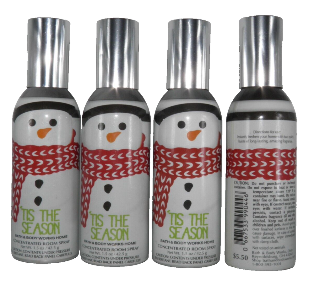 BATH & BODY WORKS TIS THE SEASON ROOM SPRAY (4 PACK) CONCENTRATED 1.5 oz Each Mailing Address - We will ONLY ship to the address on file with ebay. Before making a purchase, please ensure that your address is correct. We may otherwise cancel the sale. Handling Time - Our handling time is set to THREE BUSINESS DAYS. We ship packages Monday - Friday, with the exception of holidays. This listing is NOT sponsored by, affiliated with or representative of the mentioned brand(s), trade name(s), trademark(s) and does not claim any ownership of such. All trademarks or brands mentioned in this listing are registered trademarks of their original owners who reserve all their rights and ownership. The use or mention of any trade-name, product name, or trademark is necessary and for identification and is for reference purposes only.