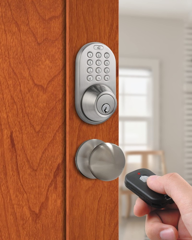 Bring convenience to your home with this electronic keypad entry deadbolt and passage knob combo door lock by . This keyless entry deadbolt and knob combo is a direct replacement for your traditional deadbolt and knob, and installs just as easy on both left handed doors and right handed doors 1 1/4"- 1 7/8" thick. You will discover how useful it is to simply share a code instead of sharing a key. Easy access for your kids coming home from school, no more need to take your keys with you on a run, no more making extra keys for others, you will wonder why you didn't switch to keyless entry sooner. In addition to adding individual users, you can also program a master code to multiple locks, a valuable feature for property management. The keypad glows in the dark which facilitates operation at night. It includes an adjustable latch with 2 different backset settings of 2 3/8" and 2 3/4" and features audible tones when locking, unlocking, and low battery warning. Operates on 4 "AA" batteries which are not included. This lock carries a 25 year mechanical warranty, 1 year electrical warranty, and a limited lifetime warranty on the finish. Keyless Keypad Entry - Add up to 10 keypad users and 10 remotes (inlcudes 1 remote) Backlit Keypad - Better visibility in the dark Direct Replacement - No extra work on standard door prep Easy Programming - Simple keypad and remote programming procedure adds or deletes users in seconds Smartphone control - smartphone compatible using INSTEON home automation system