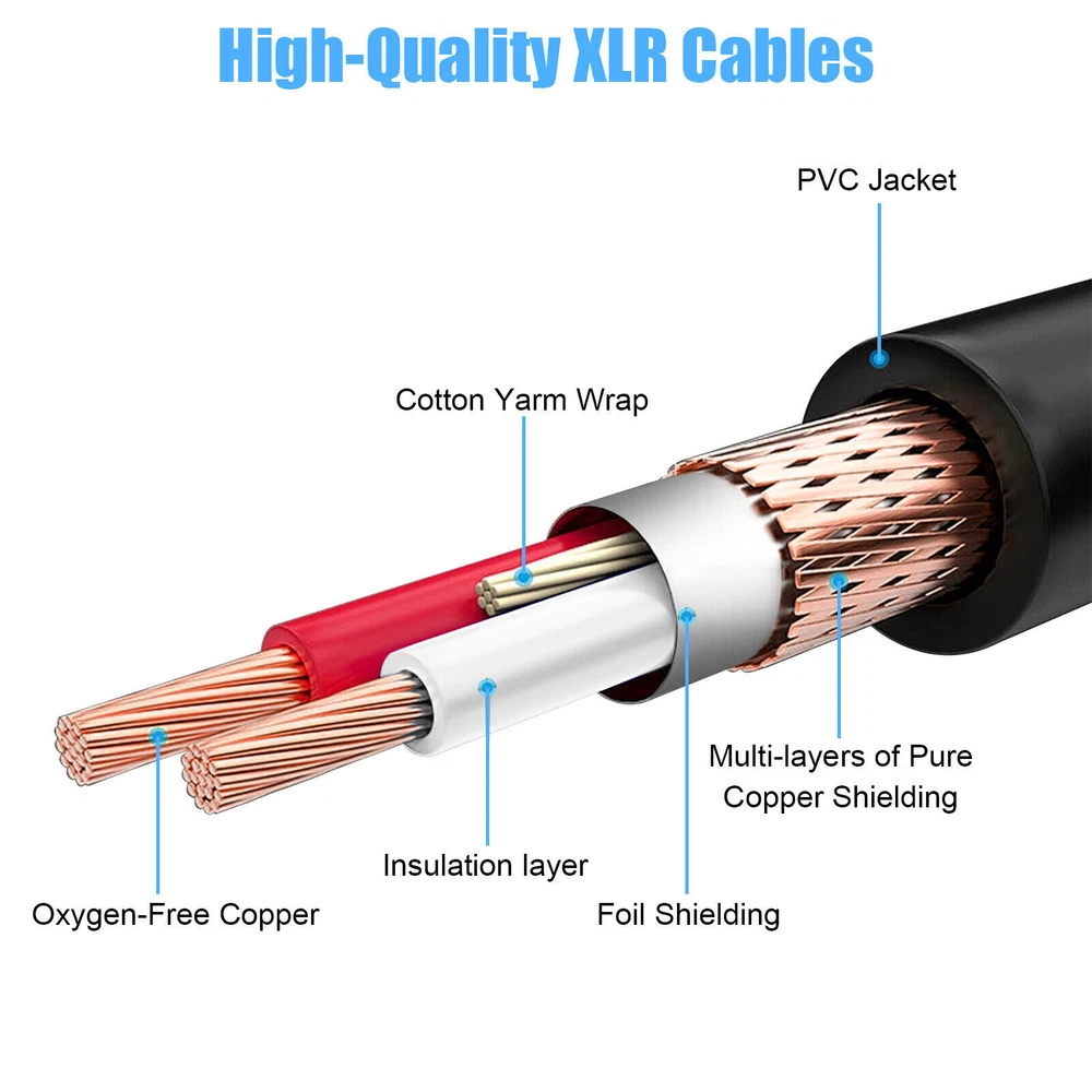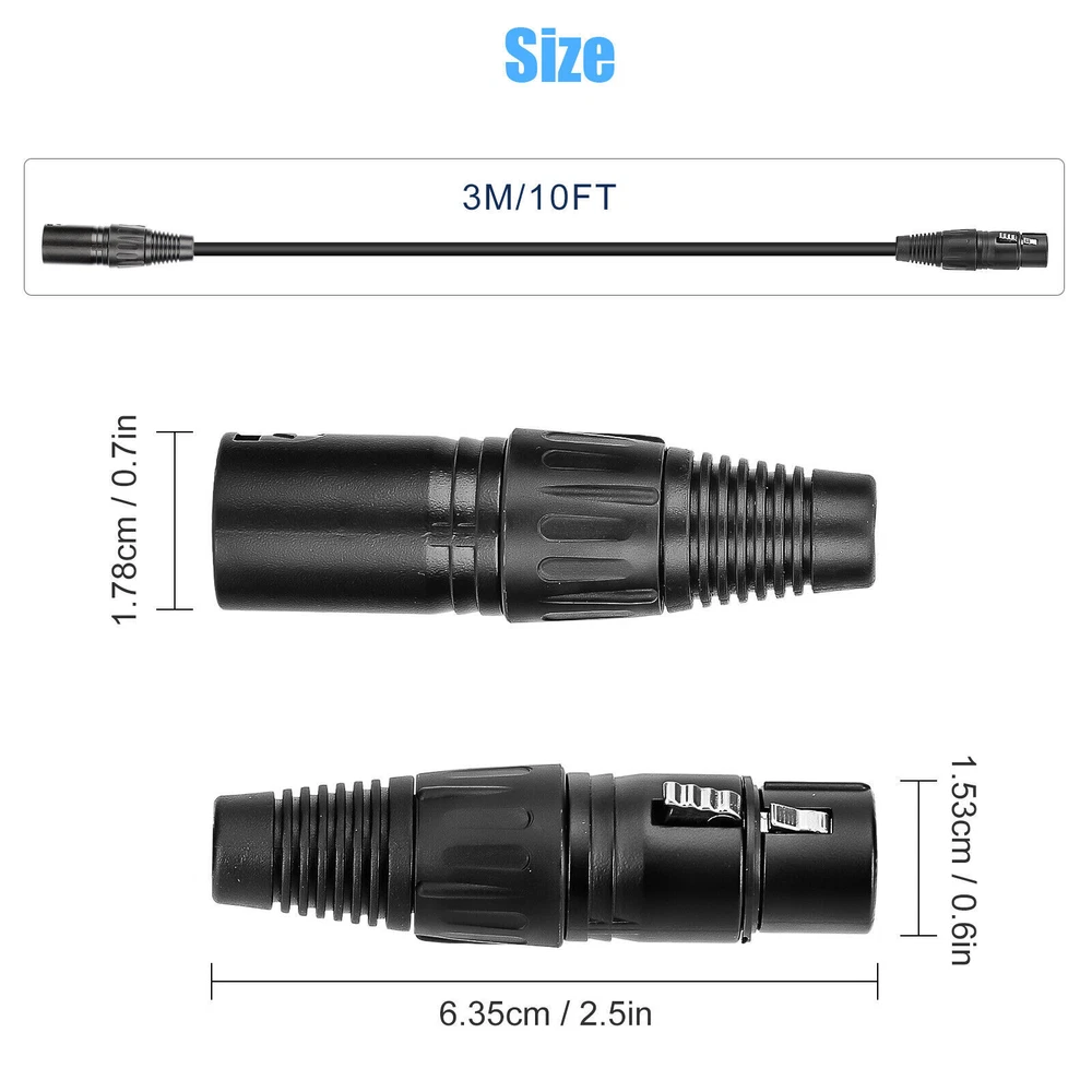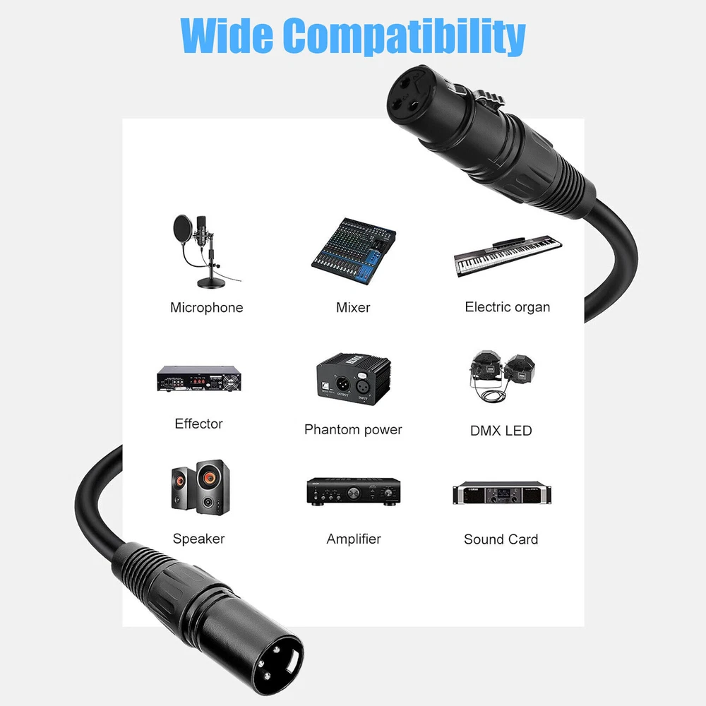 Product Features: Professional High-Quality: Our XLR cables can be effective in shielding 99% of the clutter and static interference signals, eliminating noise , and ensuring high-fidelity sound quality. Durable & Flexible PVC Jacket: Good thick and flexible, no worry of damaging it due to bending(With a 10000+ bend lifespan ). Self-locking Design: There are two self-locking designs on each connector at the ends of the cable, only when you press the unlock button, then the cable disconnect to ensure the stability of the connection. Stronger Connection: Our XLR microphone cable uses heavy-duty zinc alloy housing, pure copper silver-plated XLR pins, self-locking male-to-female connector design, these XLR speaker cables can provide a stable connection between devices with an XLR interface, easy plugging, and unplugging. Wide Compatibility: Designed for equipment with 3-pin XLR connectors such as microphones, stage lighting, DMX lamps, mixing boards, power amplifiers, studio harmonizers, speakers, patch bays, and so on. In addition, these microphone cables are widely used at stage speakers, club stages, KTV, and home theater. Package Included: 1-5 10/16.5/26FT Cables Buyer Note: If you are satisfied with our service, we appreciate you leaving us a positive feedback and 5 star rating review! Your opinion is important to the success of our business. If you are not satisfied with the product or have not received the product for more than 35 days, please contact us to resolve, we will do our best to solve. We are sure to come up with a satisfactory solution. Please contact us first before leaving cold feedback or good feedback of 1-3 stars and opening the case. We'll do our best to solve your problem. Because we believe that everything can be solved through communication. Thank you very much!