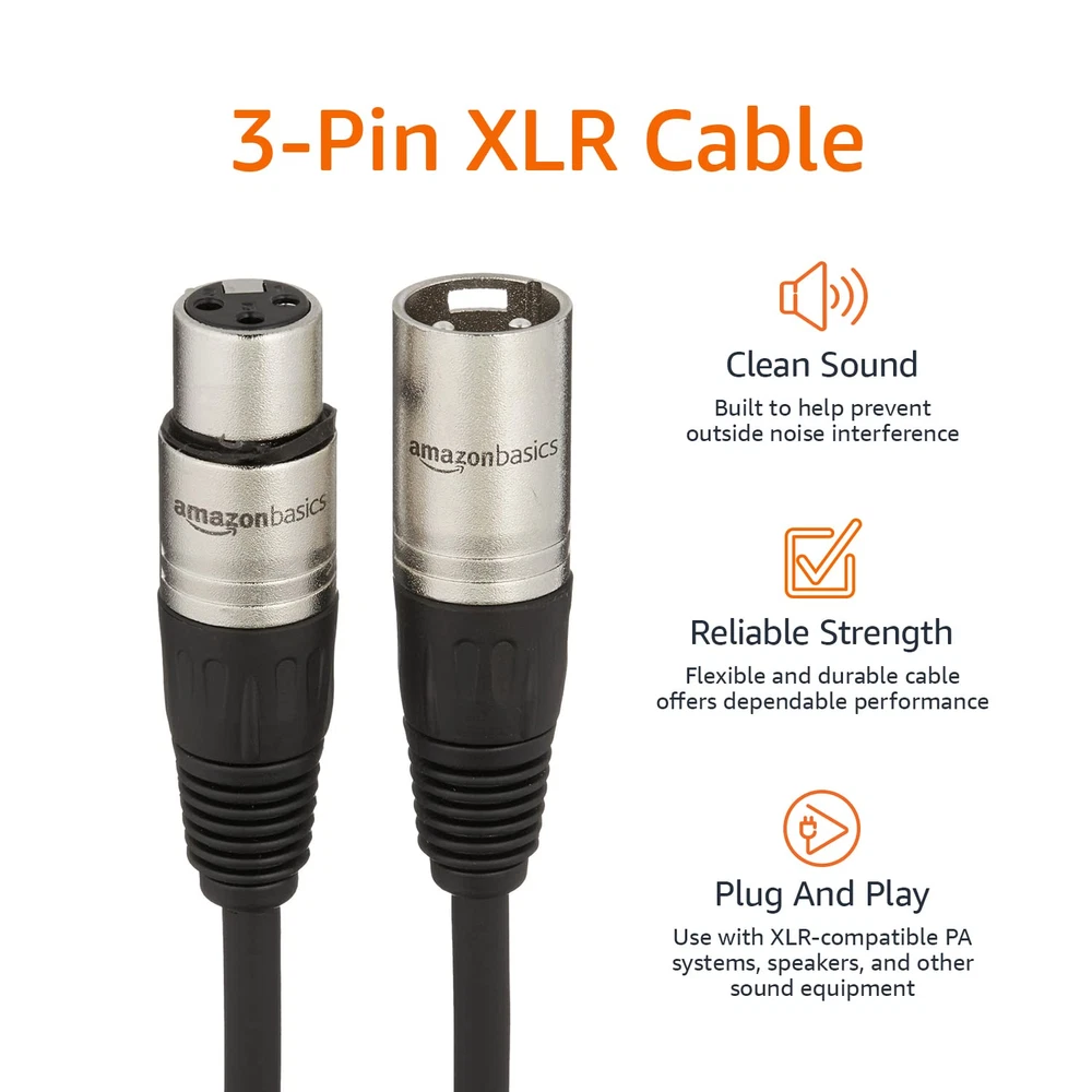 Menu Other Items Feedbacks About Us Contact Us Add To Favorites XLR Microphone Cable for Speaker or PA System, All Copper Conductors, 6MM PVC Jacket, 6 Foot, Black IN THE BOX: 6-foot XLR male to female microphone cable for XLR-compatible PA systems, speakers, and other sound equipment CLEAR TRANSMISSION: All-copper conductors with inner copper spiral shielding to reduce noise interference DURABLE DESIGN: Zinc alloy 3-pin connectors with nickeling; protective metal housing and flexible 6.0mm PVC jacket USES: Designed for studio recording and live sound Product Description Amazon Basics Standard XLR Male to Female Balanced Microphone Cable, Durable & Flexible, Noise-Cancelling - 6 Feet, Black From the Manufacturer Amazon Basics Item Specification Item model number MBB103-6 Color Black Product Dimensions 72 x 0.73 x 0.73 inches; 4.9 ounces Cable Type Microphone Cable Country of Origin China Connector Type XLR Compatible Devices Speaker Recommended Uses For Product Connect Devices Size 6 Feet Dimensions Shipping Returns Additional Info Product Dimensions: 0.73 inches x 72.0 inches x 0.73 inches. Weight: 4.9 oz Fast shipping is very important for us. Our standard shipping service is FREE. Your order will be shipped within 1-3 business days upon full payment received. Most items are delivered within 3-5 business days, however, please allow 3-10 business days. We are shipping only to USA. We only ship to the confirmed Paypal address. We reserve the right to cancel any order for any reason at any time. We are not responsible for undeliverable addresses. We offer a 30 day return policy from checkout winning date. Your satisfaction is guaranteed! If for any reason you are unhappy with your item, just return it within 30 days for a full refund, minus shipping cost. Please contact us prior to initiating a return so that we can issue you a refund authorization. Items defective upon receipt must be packaged in their retail packaging as if new and returned with a detailed description of the problem. Return shipping fees are not refundable. We reserve the right to decline any returns if the above guidelines are not followed. All of our items, unless otherwise stated, will only run on 120 volts. Please check to make sure your country complies with these specifications. If you have a problem or question regarding your transaction please contact us before leaving any type of feedback. We will work with you to resolve any problem you may have.
