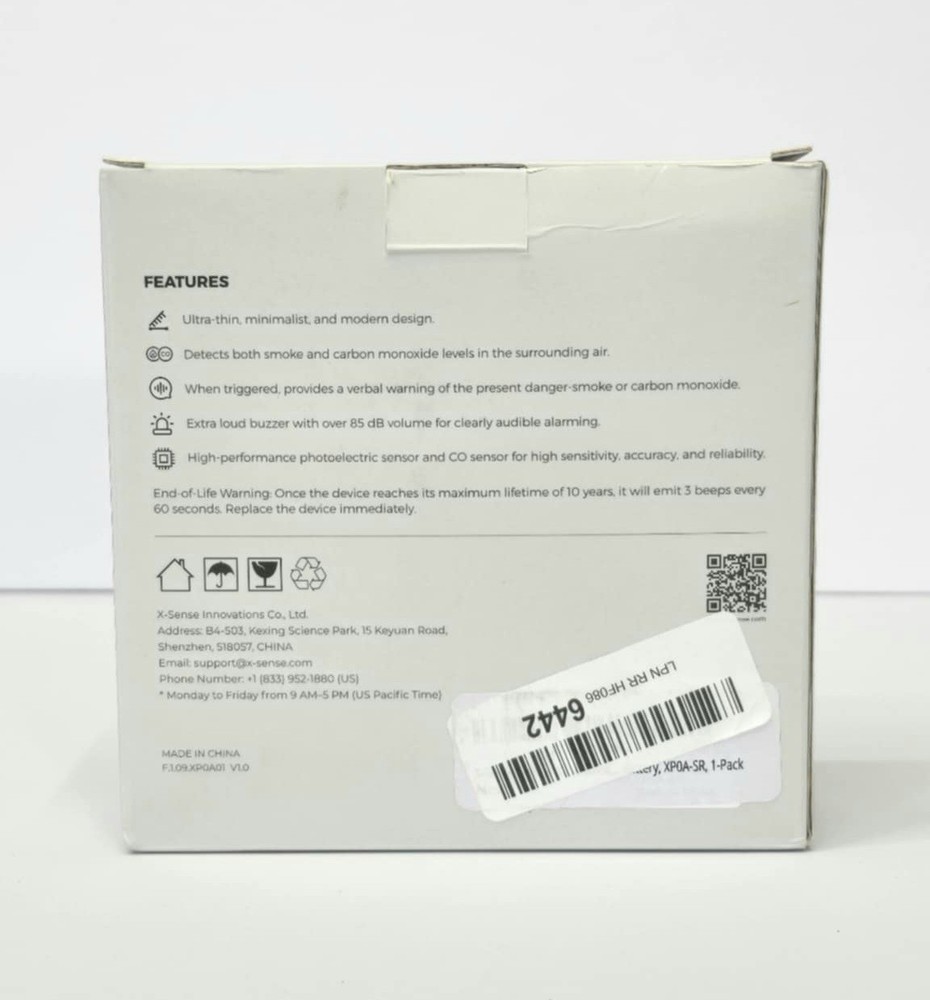 The X-Sense Combination Smoke and Carbon Monoxide Detector XP0A-SR 1-Pack is a reliable home security device designed to detect smoke and carbon monoxide. It features voice alerts for added convenience and safety in case of emergencies. This model is part of the X-SENSE brand and provides peace of mind to homeowners by alerting them to potential hazards in their living space.