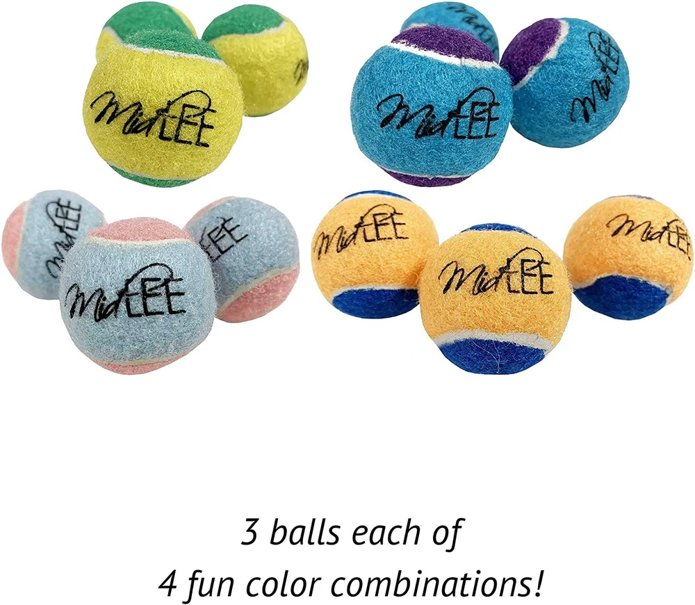 An all-time favorite that's a sure winner with any dog. These tennis balls deliver bounce and roll action and stand up to overtime play like little champs! These extra small/mini tennis balls are perfect for your small breed dog! The little size fits perfectly in your dog's mouth! They are great for a game of fetch and will fit into the most common automatic ball launchers. Soft fabric won't hurt your dog's teeth. Includes 12 dog tennis balls, each 1.5" in diameter. These balls DO NOT have a squeaker inside. Product Description Midlee Designs Unique Pet Supplies We strive to make you and your pet happy! Midlee started because finding large dog apparel for our German Shepherd was basically impossible. We specialize in unique, fun pet supplies that pets & their humans love! Midlee Designs X-Small Dog Tennis Balls 1.5" Pack of 12 (Assorted Colors) An all-time favorite that's a sure winner with any dog. These tennis balls deliver bounce-and-roll action and stand up to overtime play like little champs! These extra small/mini tennis balls are perfect for your small breed dog! The little size fits perfectly in your dog's mouth! They are great for a game of fetch and will fit into the most common automatic ball launchers. Soft fabric won't hurt your dog's teeth. Includes 12 tennis balls, each 1.5" in diameter. These balls do NOT have squeakers Mini tennis balls are perfect for puppies and small dogs. They fit in the tiniest mouths such as Chihuahuas, Yorkies, Pomeranians, Papillons, and more! " data-position="triggerHorizontal"> Our 1.8" small tennis balls are the perfect size for smaller mouths such as pugs, terriers, bulldogs, beagles, and more! " data-position="triggerHorizontal"> Our regular sized tennis balls are perfect for your fetch loving pooch. Breeds include boxers, labs, australian shepherds, border collies, doodles, and more! " data-position="triggerHorizontal"> Our large tennis balls are perfect for those huge fetch loving dogs! Breeds include German Shepherds, St. Bernard, Huskies, Giant Schnauzers and more! " data-position="triggerHorizontal"> Unique Products Looking for a holiday gift for your pet? We specialize in unique holiday-themed products; everything from costumes and sweaters to toys and treats. Size-Inclusive We offer options for X-Small, 9 lb. Chihuahuas and XXXX-Large, 90 lb. German Shepherds. Find adorable apparel that will fit your pet comfortably. High-Quality Toys We work hand in hand with our manufacturers to ensure our products are created with high quality fabric and materials. Safety for Pets With safety our main priority, we offer a variety of items with size-inclusive options, allowing your pet the best fit. Compare Midlee Designs Products Add to Cart Add to Cart Add to Cart Add to Cart Add to Cart Customer Reviews 4.6 out of 5 stars 2,286 4.6 out of 5 stars 2,286 4.1 out of 5 stars 168 4.4 out of 5 stars 171 — Price $16.99 $ 16 . 99 $18.99 $ 18 . 99 $26.99 $ 26 . 99 $19.99 $ 19 . 99 $14.99 $ 14 . 99 The Perfect Gift for Your Dog ✔ ✔ ✔ ✔ ✔ Plush Dog Toy ✘ ✘ ✘ ✔ ✘ Squeaky Dog Toy ✘ ✘ ✘ ✔ ✘ Category Toys Toys Homegoods Toys Apparel Available in Multiple Sizes No No Yes Yes Yes