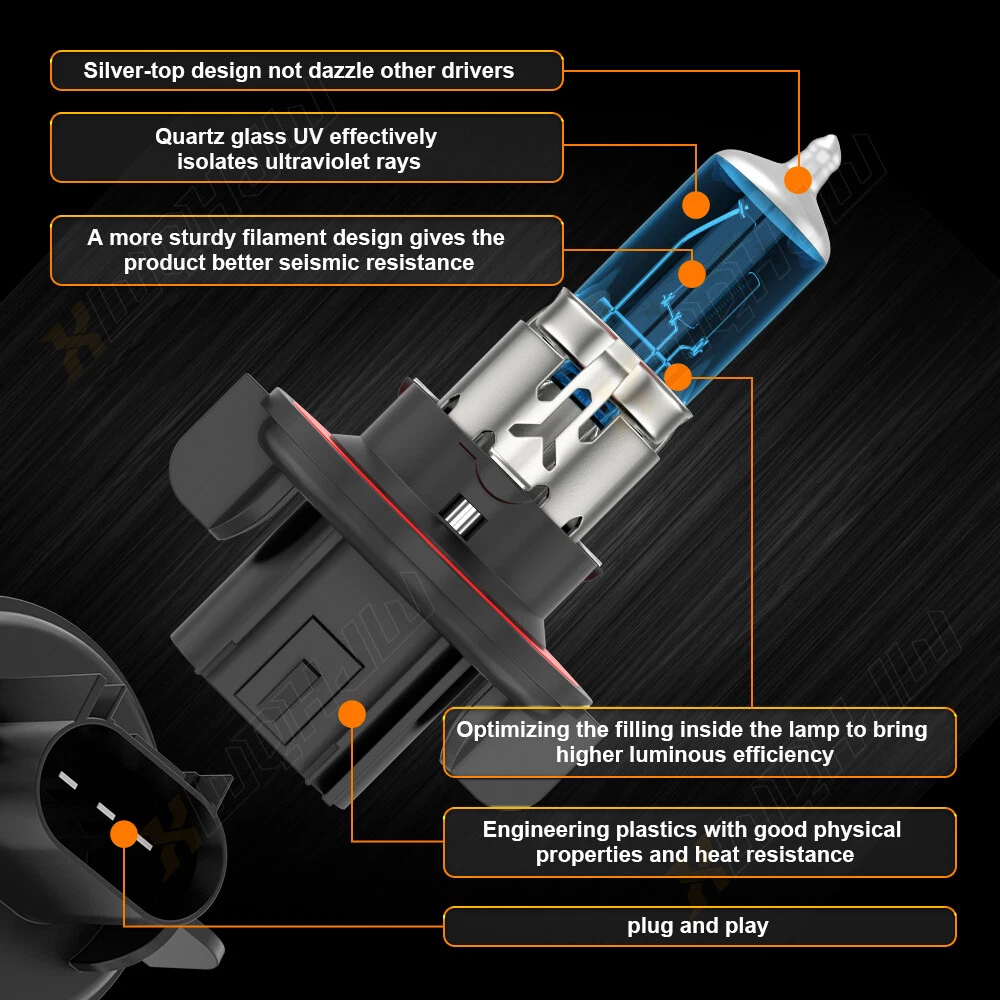 High brightness - XWQHJW® Ultra High Performance Halogen Lamp Bulbs, 350% brighter than other halogen bulb. Perfect Beam Pattern - Using the latest Halogen technology, the beam pattern is focused and concentrated on the road with a clear dividing line. 5500K Cool White - With a color temperature of 5500K, bright white light provides better visibility. IP67 Waterproof - Can perform well in low visibility conditions in harsh weather conditions like fog, rain, snow, dust, etc. How Do I Know These LED Bulbs are Right for My Vehicle? Plese check the size on Ebay fitment guide system ( Ebay filter system may not be up to date. ) Plese check your vehicle user manual or original halogen bulb, the part number is marked above. Plese search "automotive bulb look-up" online, and enter your vehicle info to find out the correct size. Or in 'Customer questions & answers', write down your vehicle year, make, and model, we will help you check. XWQHJW Q&A RETURNS SHIPPING PAYMENT CONTACT US XWQHJW Q&A Q1: Will this bulb fit my vehicle? A1: We can match almost any vehicle to one of our bulb sizes. eBay only lets us include some vehicle fitments per listing, but if your vehicle does not show up on the compatibility table at the top of our listings, welcome you to contact us for free consulation before purchasing a product. Q2: My item has not arrived, what's taking so long? A2: Sometimes items take longer than expected, especially if it’s going far or to rural area. Check with your post office to see if your item has been held up. Sometimes Royal Mail will not update a tracking number until it has arrived at its destination. If your item still don't arrive after a few days, let us know so we can double check for you and help solve it asap. Q3: My bulbs won't fit, help! A3: Special bulb holder may be required. See if you can take the holder from the stock bulb. If not, let us know. The bulb size may be wrong, double check the item you received with the item you ordered. Do you have an aftermarket lighting housing? These may not be perfectly fitted for aftermarket bulbs and will require some manual modifications. Q4: Neither side lighting up? Both sides flicker, hyper flash, or work inconsistantly. A4:Check the light fuses, and then check the ballast plugs to insure correct installation. If this doesn't work, there may be a voltage problem with the vehicle. You probably just need a relay or capacitor. Even though some bulbs are builtin resistors, they may still need a decoder. Q5:Why after installing the bulb, there have the flicker/error message/radio interference? A5: Some car's system is sensitive to the led bulb, we can send the decoder/resistor to help you solve the problem. RETURNS (1) We offer 60 days return policy. Please contact us within 60 days t from the date you receive your order if you have any issues with the product or want return .Refund will be send after we got your resend package. (2) All returned items should be in the original packaging , return tracking information should be provided. (3) Buyer is responsible for return shipping cost due to the problem not caused by item quality itself. (4) Items to be returned must be in resalable condition, for example: Item do not fit your vehicle perfect The item arrived be broken Parcel Lost If you have problems with the above issue, please Contact Us immediately. SHIPPING Domestic(U.S.) Shipping All items will be shipped out within 1 or 2 business days with cleared payment. Please included your phone number to the payment note for prompt and secure shipment. Tracking numbers for all orders are added to eBay once they have been dispatched; please login to eBay to find the tracking information for your order. Most items are shipped USPS first class mail, delivery usually takes just 4-6 business days. Additionally, we do not ship on weekends. International Shipping Puerto Rico: As we use standard USPS, PR is considered a US territory for mailing purposes, and can be selected as such at checkout. Shipping will be domestic U.S. rates. For Canada & Mexico or other countries We use the eBay's Global Shipping Program. Once you’ve paid for your item, we'll send it to the global shipping center within 1 or 2 business days. From there, it's sent to you. Lost Shipments For non-signature required shipments: If the tracking information that corresponds to a shipment confirms that the product was delivered to the intended address, the customer assumes all responsibilities and liabilities for the receipt of the shipment.The Customer is the one who provided XWQHJW with the ship to information, and in doing so absolves XWQHJW of any liabilities for missing or stolen deliveries. Customs Fees for International Shipping Shipments are marked with the value of your purchase price. International customers are responsible for any tariffs or customs fees that may be associated with their shipment. Please check your country's laws and regulations before your purchase. PAYMENT Variety of payment methods are accepted, such as credit, debit, gift cards, Apply pay, Google Pay, Paypal and Paypal Credit. We only ship to the confirmed shipping address given with the payment. If you want to ship to other address, please change your shipping address before you make payment. To avoid initiating an unpaid item claim, please pay within 7 days. CONTACT US If you have ANY questions with shipping, product or service, please Contact Us first before leaving feedback/write a review or filing a return case. We will solve the problem! We always put our customers first and your satisfaction is guaranteed. Our office hours are Monday - Friday 6:00PM - 3:00AM PST, but we will response you once we get your message. There will be some delay on respons if you send message or E-Mail on Saturday、Sundy. On Nov 21, 2024 at 19:16:38 PST, seller added the following information: