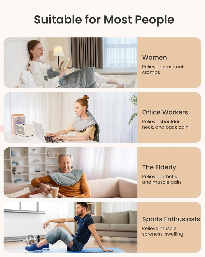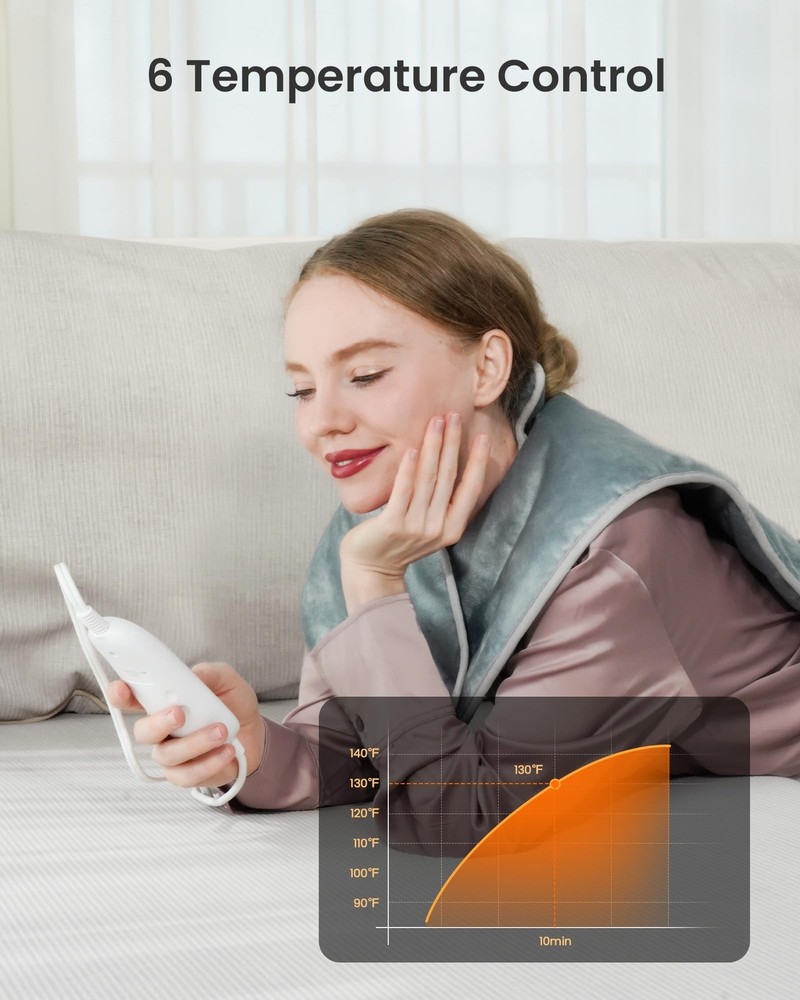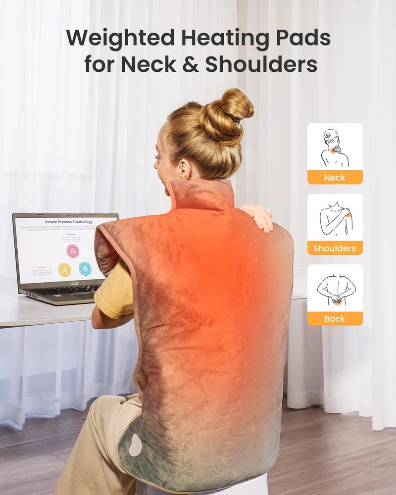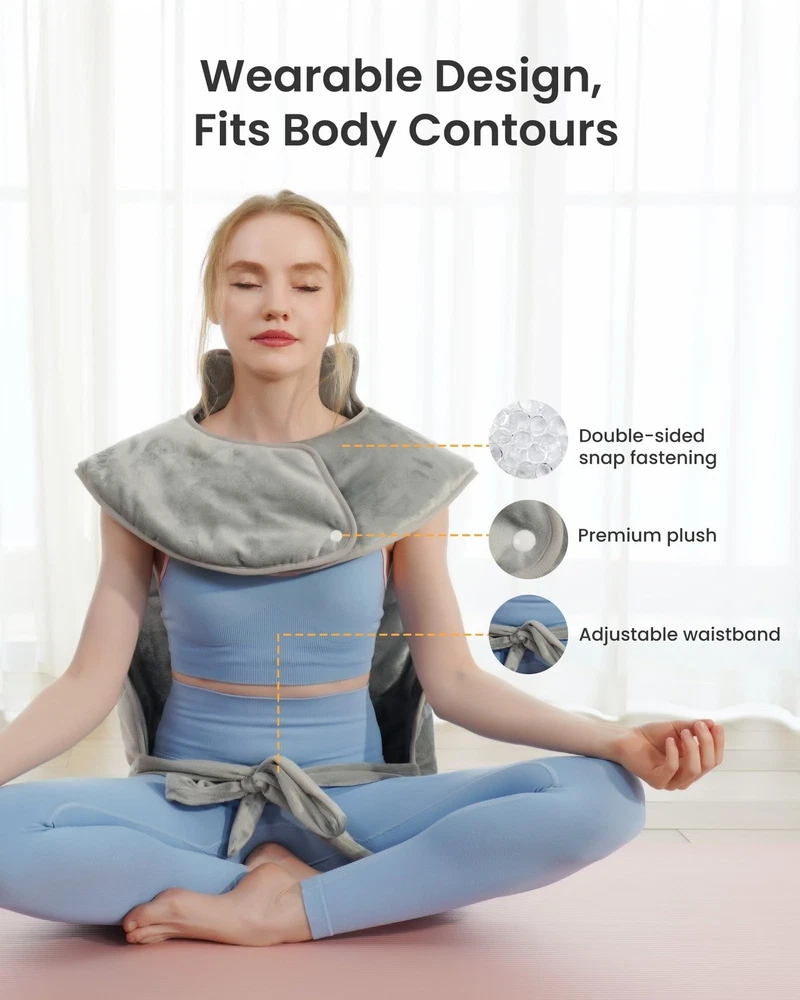 Heating Pad for Full Back Pain Relief, 24"x37" XXL Heating Pad for Neck and Shoulders and Back, Large Electric Neck Shoulders Heat Pad, 6 Heat Settings, 4 Timers Auto Off, Machine Washable Product Details Size: 24*37 Inch Brand: Koonie MPN: JBFRD201 UPC: 850060965654 EAN: 0850060965654 Special Feature: Automatic Shut Off, Overheat Protection Material: Cotton Brand: Koonie Color: Gray Number of settings: 6 Package Dimensions : 10.43 x 8.7 x 4.57 inches; 1.76 Pounds Item model number : JBFRD201 Date First Available : September 9, 2024 Manufacturer : Koonie Country of Origin : China Large Heating Pad: The size of 24 x 37 inches can provide a large area of heat for your body and keep you warm on cold days; the stand-up collar design keeps your neck warm, snap button and adjustable shoulder straps make your hand-free while you are relaxing, working and doing household chores. Fast Acting, Instant Pain Relief: This electric heating pad for neck and shoulders and back uses advanced heating technology to deliver effective, targeted heat therapy. It quickly alleviates muscle pain, cramps, and soreness Multiple Temperature and Timer Settings: The neck heating pad allows you to customize the temperature and heat therapy time. Offers 6 heat settings and 4 auto-off times to provide relaxation from neck and shoulder pain after work, exercise, or travel Soft Fabric: Koonie Heating Wrap for Back, Neck and Shoulders is made of cozy soft coral fleece cloth providing you with excellent comfort and soft body touch. Electric heated wraps can provide even heat distribution to warm the body and relieve muscle. Washable & Portable: Koonie heating pad for neck and shoulders is hand or machine-washable in cool water, easy to keep it clean, and suitable for family use. It is lightweight and very convenient to fold & roll into the storage bag. Let you enjoy the warmth of comfort in your home or office.