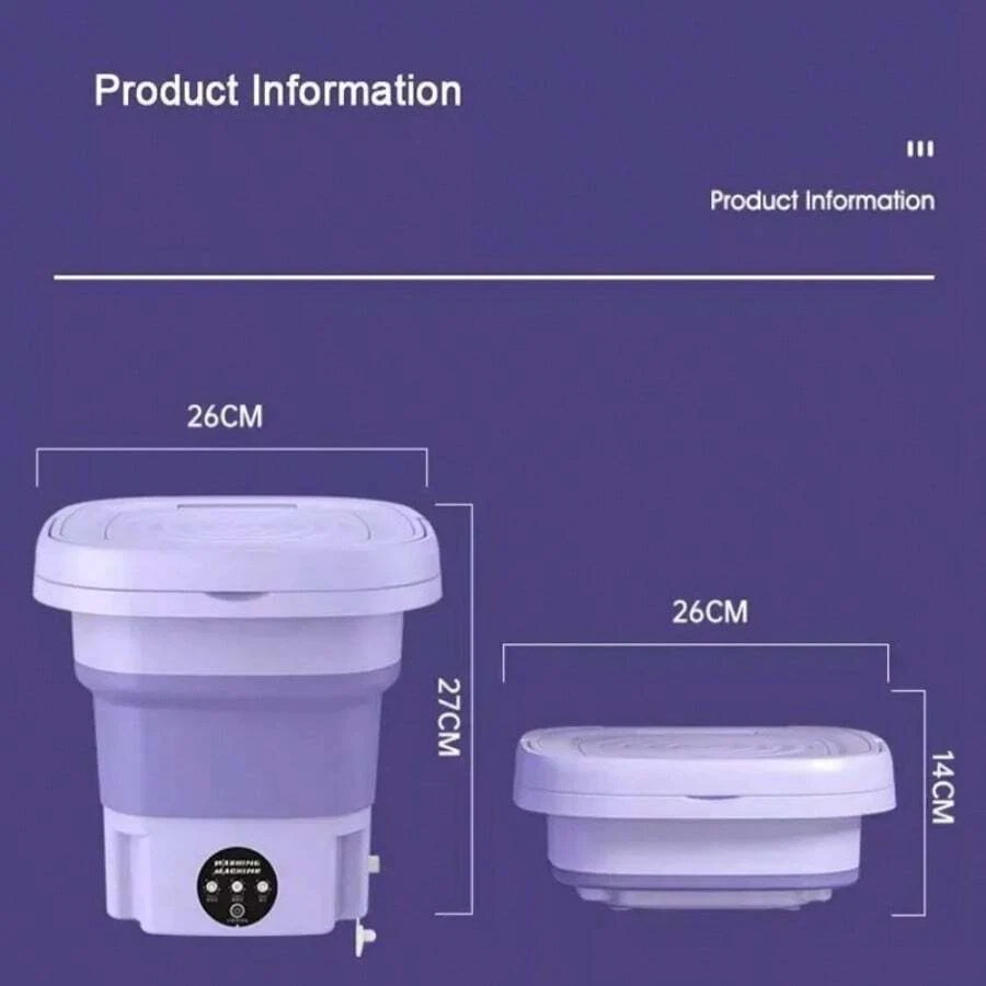 Note: The mini washing machine is specially designed for small items such as baby clothes, underwear, socks, towels, fruits and vegetables, pet supplies, etc. It cannot wash sweaters and large clothes. PLEASE NOTE: This mini washer does not replace a full-size washing machine. Features: 1 [Portable Washer] The portable washing machine provides a drain pipe and a collapsible drain basket, the body only weighs 3.3 pounds, compact and easy to carry, it is an ideal choice for your apartment, dormitory, RV, travel or camping! It is also your ideal gift selection! 2 [Powerful Decontamination] This mini washing machine provides all-round imitation hand scrubbing, precise washing speed to achieve strong decontamination effect. Coming with blue ray, it is very suitable for washing small clothes such as baby clothes, underwear or socks, Stay healthy for you and your family! [Not Recommended]jeans, long skirts, bathrobes and other large clothes. 3 [Folding Design] The small portable washing machine cleverly adopts a foldable design, which measures 11.8 x 11.8 x 11 inches when unfolded and 11.8 x 11.8 x 4.9 inches when folded. Easy to store, fits easily between shelves or under a bed without taking up too much space in your home. 4 [Easy to Operate] The compact simple washing machine has a semi-automatic cleaning function with 3 mode timer buttons for 1 minute, 5 minutes and 10 minutes, and automatically resets when finished, so you can easily complete your various washing requirements. (PS. No need to put in the drainage basket when washing clothes, Fill 2/3 of the washing machine with water for better washing effect). 5 [Safety & Energy Saving] Our portable washing machine adopts the use of TPE and grade silicone material, it is a great choice for your personal items, baby products, patients' families! Only 0.05 kWh of electricity is needed for each laundry. Save time, money, and effort while providing you with a high-quality healthy life! 6 Large Capacity: 40W strong washing power, 8L large capacity design, personal clothes can be washed at any time, and farewell to accumulation. Specification: Washing Machine Type: Mini Washing Machine Energy Efficiency Rating: None Loading Type: Top Loading Power (W): 40w Voltage (V): 110V Washing Capacity (kg): <2kg Opening Method: Top Open Washing Program: Pre-wash,Power Wash,Quick wash,Standard Wash Installation: Portable / Mini Tub Material: Plastic Tub No. : Single Tub Condition: New Type: Compact Drainage Method: Lower Outlet Motor type: Common Motor Model Number: Mini Washing Machine Automatic Type: Automatic Power Source: Electric Housing Material: Plastic Depth: <50 cm Control type: electronic Product size: 30 x 30cm/11.8 x 11.8inch When folded: 30 x 12.5cm/11.8 x 4.9inch Packaging: Boxed Product Material: Plastic Plug specification: US Standard Package List: 1x mini washing machine 1x power plug 1x drain pipe 1x English user manual