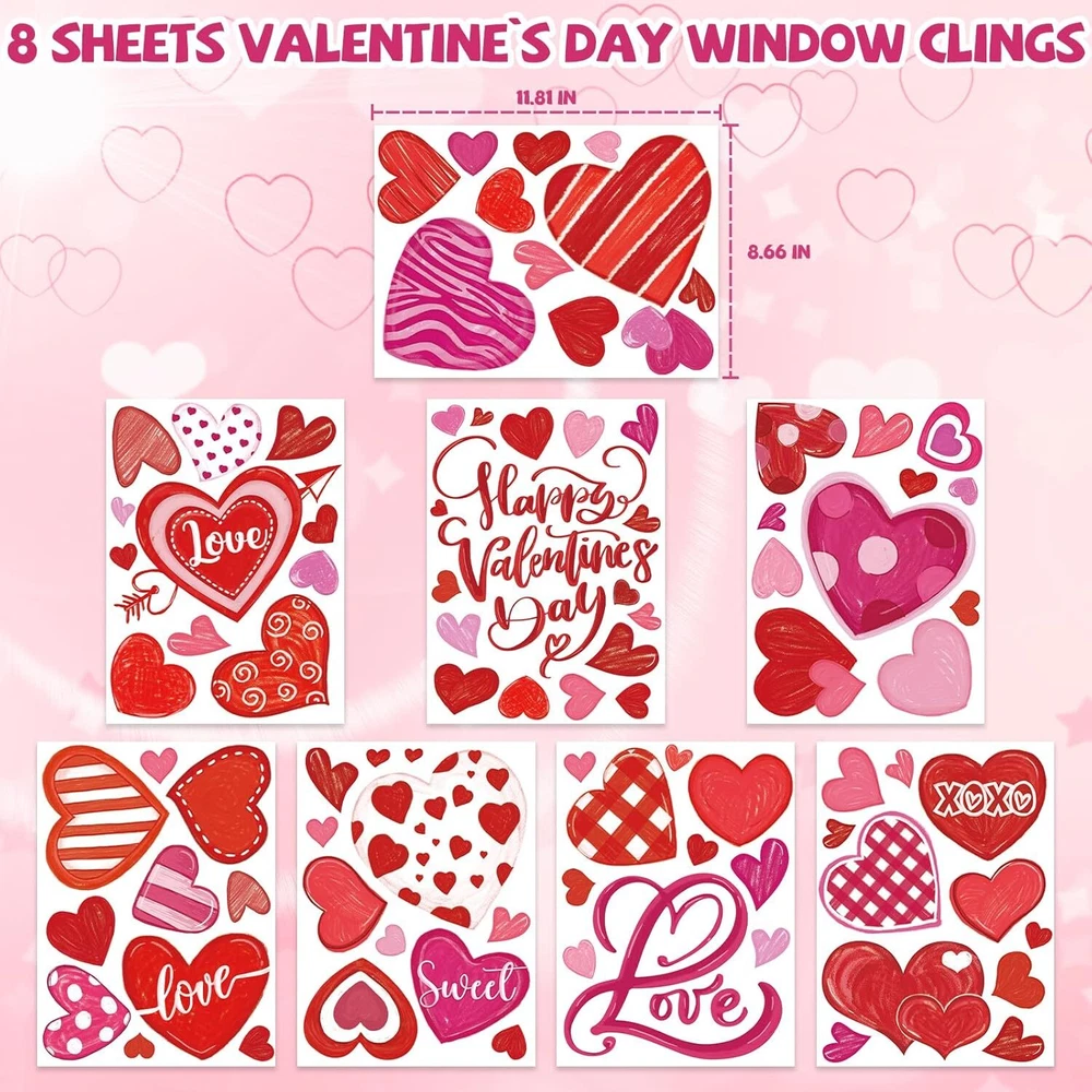XZENTIRA 8 Sheets Valentines Day Window Clings Multicolor Product Details Brand: XZENTIRA Color: Multicolor Item dimensions L x W x H: 11.81 x 8.66 x 0.28 inches Recommended Uses For Product: Car Theme: heart Cartoon Character: heart Special Feature: Reusable, Fade Resistant Number of Pieces: 8 Style: Valentine's Day Embellishment: Glitter Age Range (Description): Kid Reusability: Reusable Item Form: Sheet Pattern: Letter Print, Heart Indoor/Outdoor Usage: Indoor Finish Type: Glossy Water Resistance Level: Not Water Resistant Target Audience: Adults in relationships or celebrating love Seasons: winter Product Dimensions: 11.81 x 8.66 x 0.28 inches Item Weight: 5.3 ounces Manufacturer: XZENTIRA Item model number: XZJRDZ01-010 Surface RecommendationMaterial: windowPVC ShapeUnit Count: Heart93.0 Count VALENTINES DAY WINDOW CLINGS SET: This exquisite set includes 8 uniquely designed valentines day window clings that enhance the festive atmosphere of Valentine's Day. Perfect for decorating your home or office, these valentines window clings transform your space into a romantic haven, filling it with warmth and love CLASSIC DESIGN: Featuring a palette of classic pink, red, and magenta, these window clings showcase distinctive heart patterns, making them an ideal choice for your valentine decorations for home and valentines day decorations for office. Whether for a family gathering or an office setting, these heart window clings will bring your decorations to life, creating a sweet and romantic ambiance EASY TO USE: Applying these valentines window clings is incredibly simple. Just clean the smooth surface, peel off the backing, and press gently to adhere. Plus, they remove easily without leaving any residue, allowing you to rearrange or store them for future use, creating a hassle-free decorating experience and an impressive valentines day window decoration VERSATILE APPLICATIONS: These Valentines Day window clings are perfect not only for windows but also for glass doors, cabinet doors, refrigerators, and smooth walls. Spread love and joy throughout your space this Valentines Day. Whether used as decorations or gifts, these clings convey the heartfelt message of "happy valentines day,"sharing warmth and celebration with everyone around you