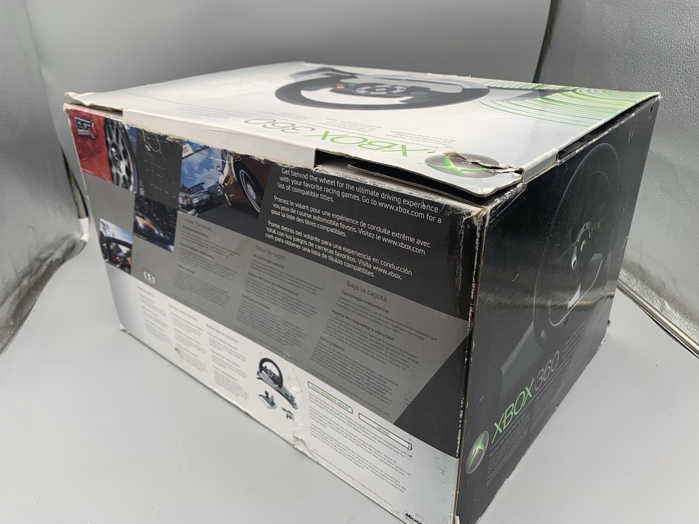 The Microsoft Xbox 360 Wireless Racing Steering Wheel is a white plastic replica of a steering wheel designed for racing games on the Xbox 360 platform. It features a wireless connectivity option for convenience and offers a realistic gaming experience for solo play. This officially licensed product by Microsoft is compatible with various racing games, consoles, and controllers, making it a versatile accessory for enthusiasts of racing simulations No demo disc or manuals
