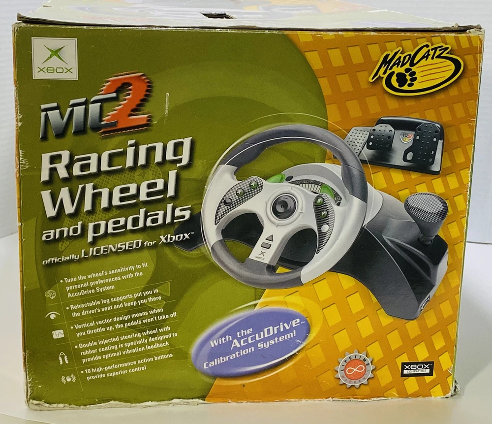 Get ready to take your racing game to the next level with this Xbox Mad Catz MC2 Racing Wheel and Pedals. Designed for Microsoft Xbox, this multicolor racing wheel is compatible with various console and games, including console, controller, and console & games. It has a wired connectivity and features a wheel with pedals for a realistic racing experience. This vintage “2001” racing wheel is made of plastic and has a maximum of one player. It comes with a fan and is compatible with consoles and games, controllers, and console & games. The Mad Catz MC2 Racing Wheel and Pedals is perfect for video game enthusiasts who want to enhance their gaming experience. We do our best to describe items accurately. Where there are noticeable defects, we will attempt to describe it or picture it. Please view all photos BEFORE purchasing as they are a part of the description. Please ask any questions before purchasing.