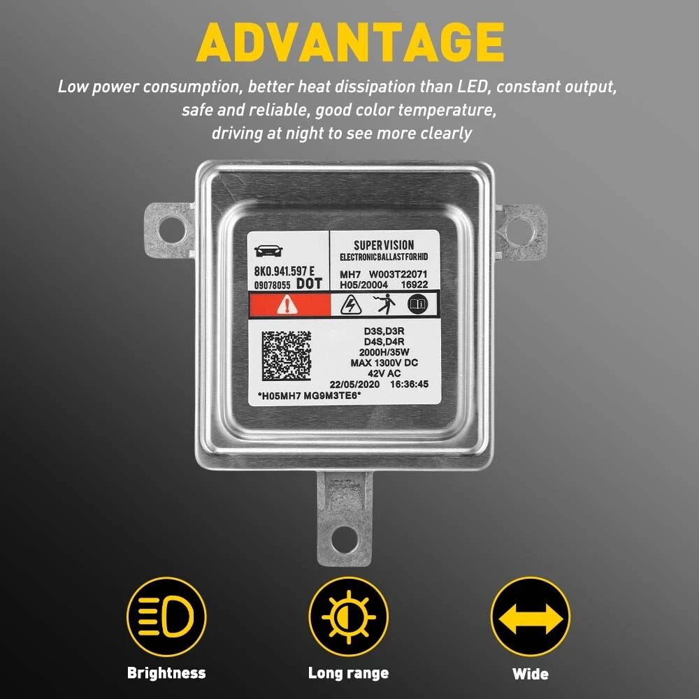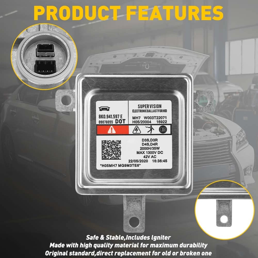Fits for: Audi A1 2010-2015 Audi A3/S3 2009-2015 Audi A4/S4 2010-2015 Audi A5/S5/RS5 2008-2015 Audi A6/S6/RS6 2009-2015 Audi A7/S7/RS7 2010-2014 Audi A8/S8/A8L 2010-2014 Audi Q5 2009-2015 Audi Q7 2010-2015 Audi Q3 2012-2015 Volkswagen CC 2012-2015 Volkswagen Eos 2012-2015 Volkswagen Golf,GTI 2014-2015 Volkswagen Tiguan 2012-2015 Volkswagen Touareg 2011-2015 Volkswagen Passat 2013-2015 Volkswagen Polo 2010-2013 Specifications: Material:Aluminum Input: DC 12V Output: AC 42V Adaptation bulb??D3S, D3R, D4S, D4R Wattage: 35W Xenon Ballast HID Light Control Unit Computer Module 8K0941597E For Audi VW New Fits for: Audi A1 2010-2015 Audi A3/S3 2009-2015 Audi A4/S4 2010-2015 Audi A5/S5/RS5 2008-2015 Audi A6/S6/RS6 2009-2015 Audi A7/S7/RS7 2010-2014 Audi A8/S8/A8L 2010-2014 Audi Q5 2009-2015 Audi Q7 2010-2015 Audi Q3 2012-2015 Volkswagen CC 2012-2015 Volkswagen Eos 2012-2015 Volkswagen Golf,GTI 2014-2015 Volkswagen Tiguan 2012-2015 Volkswagen Touareg 2011-2015 Volkswagen Passat 2013-2015 Volkswagen Polo 2010-2013 Specifications: Material:Aluminum Input: DC 12V Output: AC 42V Adaptation bulb??D3S, D3R, D4S, D4R Wattage: 35W Manufacturer Part Number: 8K0 941 597 E, W003T22071 Compatible with the Following Part Numbers and Vehicles: for VW/Audi Porsche #: 8K0941597E, 8K0 941 597 E; for Chrysler #: BAM92-143700; for Mitsubishi #: W003T22071, W003T20171, W003T21971. Dorman 601-067. Interchange Part Number: 8K0941597, 8K0 941 597, 8K0-941-597, 8K0-941-597-C, 8K0 941 597 C, 8K0941597C, 8K0-941-597-E Features: *Superior material Made of superior aluminum material to ensure its long service life and stable performance. *Function A ballast is a crucial part of a fluorescent or HID lighting system. In a fluorescent lighting system, the ballast provides the voltage needed to start the lamp and regulates the electrical current of the light once it is lit. Without a ballast, the lamp would draw too much power, causing it to burn out quickly-sometimes even within a few minutes. The ballast prevents this from happening and ensures you get the benefits from the long service time of the lamp. *Description The ballast can act as DC to AC converter so that you can use the normal DC power source in the car to light the bulbs efficiently. The most common problem of HID Ballast failure is flickering, or dipped beam not working, which may result from long-term use. When having problems, you'd better replace them to avoid inconvenience to your driving. *Low power consumption The ballast module with low power consumption and better heat dissipation makes you safer when you are driving at night. *Easy installation Simple installation with direct replacement,other modifications are not required. *Protection The internal waterproof circuit board is treated with adhesive glue irrigation, which will protect internal electronic components from oxidation and aging and reduce vibration caused by loose and poor contact. Packaging include: Ballast Module*1 Item Specifics Brand Unbranded Other Part Number ADQ-Audi Fitment Type Direct Replacement Manufacturer Part Number 8K0 941 597 E, W003T22071 Placement on Vehicle Front Left Right Lighting Technology HID Features Superior material Material Aluminum Input DC 12V Output AC 42V Adaptation bulb D3S, D3R, D4S, D4R Wattage 35W OE/OEM Part Number BAM92-143700; for Mitsubishi Universal Fitment No Packaging include Ballast Module*1 Interchange Part Number W003T22071, W003T20171, W003T21971. Dorman 601-067. Item Length Audi A1 2010-2015,Audi A3/S3 2009-2015 Universal Fitment No Packaging include Ballast Module*1 Interchange Part Number W003T22071, W003T20171, W003T21971. Dorman 601-067. Item Length Audi A1 2010-2015,Audi A3/S3 2009-2015 Payment Variety of payment methods are accepted, such as credit, debit, gift cards, Apply pay, Google Pay, Paypal and Paypal Credit. Shipping 1. All items will be shipped in 24 hours after receiving your payment . 2. We ship this item to US only via USPS first class mail. It usually takes 3-5 working days to deliver. Returns 1. We offer 60 days return policy. 2. Please contact us if you have any questions with the products . 3. Refund will be sent after we got your returned package. 4. All returned items should be in the original packaging with tracking number. Contact Us We work from Monday - Saturday 9:00AM - 6:00PM, but we will reply once we get your message. There will be delay on response if you send message or E-Mail on Sunday. DESCRIPTION PAYMENT SHIPPING RETURN POLICY CONTACT US Shop Category Store Home LED Headlight ◈ 9005 HB3 ◈ 9006 HB4 ◈ 9007 HB5 ◈ H7 LED Fog Light ◈ H8 H9 H11 LED Plate Light LED Reverse Light LED Brake Light Rear Bumper Light LED Tail Light Tail Light assemblies Car Parts & Accessories ◈ LED Third Brake Light ◈ Other Parts & Accessories Other New List Item AUXITO LED License Plate Light 6000K 2X Q Dodge for Ram 1500 2500 3500 2003-2018 USD 15.19 Door Limiting Check Strap Wire Protecting Harness for Jeep Wrangler JK JKU JL JT USD 12.34 Dashboard Pad Dash Cover Mat For 2009-2011 2007 2008 CAMRY TOYOTA Black Dash-mat USD 20.09 Evaporative Emissions System Leak Pump Detection For Ram 17-19 V6 1500 220 3.6L USD 18.99 Uncut Window Tint 5% VLT Film Heat Reduce Shade Blackout Block Mirror Office USA USD 11.49 Hot Item WHITE LED Side Door Light Lamp For Toyota Camry Prius Avalon 4Runner 6000K 12V USD 11.39 Rubber Seal Trim Prevent Water Leakage Windshield Sunroof Roof Top Window 10FT USD 10.99 AUXITO Grille Garnish TSS Sensor Cover For 2018-2021 Toyota Tacoma TRD PRO BLACK USD 13.29 FOR 94-04 MUSTANG PASSENGER or DRIVER SIDE MASTER POWER WINDOW CONTROL SWITCH USD 9.99 Rubber Seal Trim Prevent Water Leakage Windshield Sunroof Roof Top Window 10FT USD 12.34 Excellent Delivery Xenon Ballast HID Light Control Unit Computer Module 8K0941597E For Audi VW New Fits for: Audi A1 2010-2015 Audi A3/S3 2009-2015 Audi A4/S4 2010-2015 Audi A5/S5/RS5 2008-2015 Audi A6/S6/RS6 2009-2015 Audi A7/S7/RS7 2010-2014 Audi A8/S8/A8L 2010-2014 Audi 