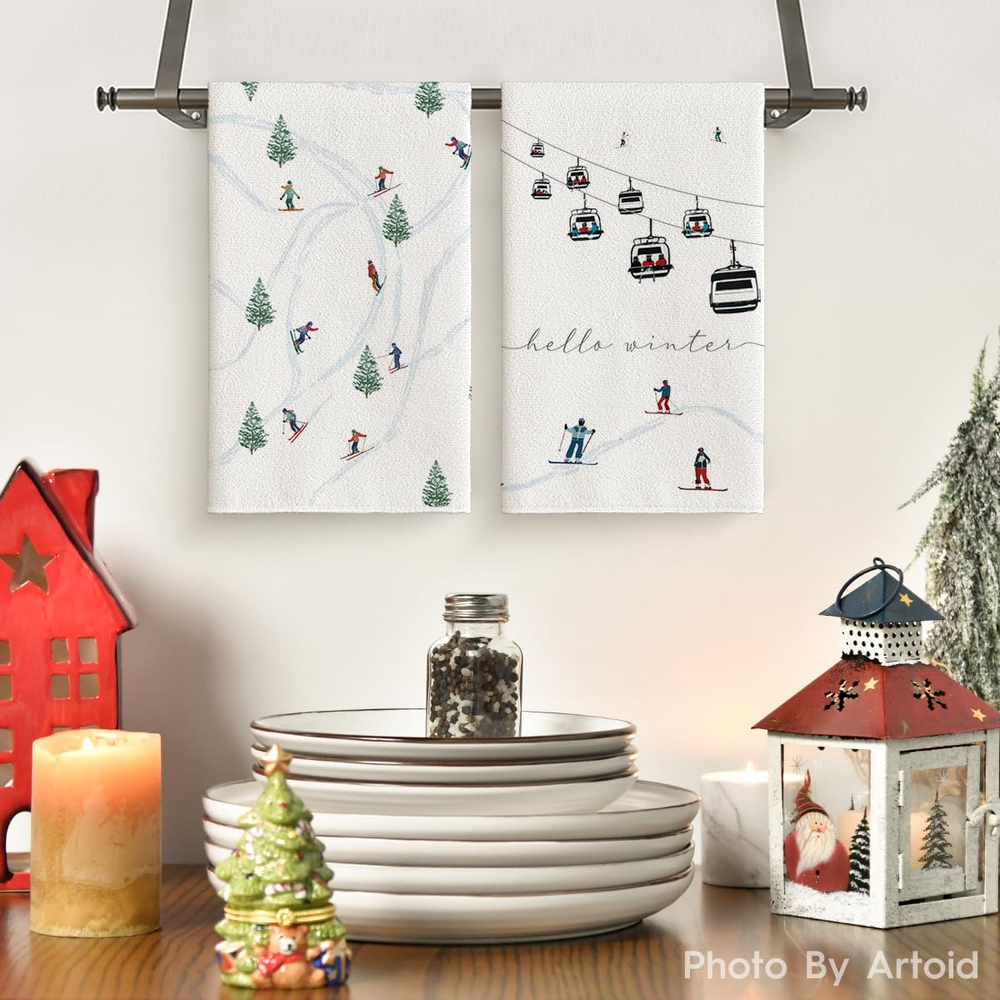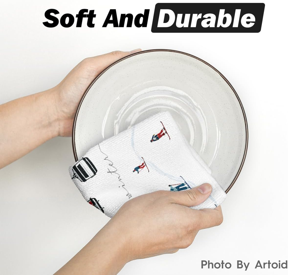 Soft Material : 100% High-quality durable fibers, machine washable & tumble dry, ultra-soft so they won't scratch your delicate cookware, plates, pots, or pans Highly Absorbent : Absorbent enough for drying, cleaning, scrubbing or achieving any other household task. Keep absorbent even after multiple machine cycles Includes : Brand new set of 2 stylish dish towels/tea towels 18 X 26 Inches (43cm X 66cm), long-lasting durability and performance Kitchen Decor : Add flair to your kitchen decor with Artoid Mode colorful kitchen dish towels. Perfect for all of your daily drying and cleaning kitchen jobs Unique Cute Design : Printed with stylish, unique and cute patterns. It is the perfect combination of seasonal decor and daily cleaning Product description The video showcases the product in use. The video guides you through product setup. The video compares multiple products. The video shows the product being unpacked. Wishing you peace, love, and cookies galore this Christmas! Customer Reviews 4.2 out of 5 stars 153 4.2 out of 5 stars 66 3.6 out of 5 stars 24 4.4 out of 5 stars 28 4.2 out of 5 stars 67 4.3 out of 5 stars 18 Price $9.99 $ 9 . 99 $8.99 $ 8 . 99 — — $9.99 $ 9 . 99 — Material Polyester Polyester Polyester Polyester Polyester Polyester Dimensions 18 x 26 Inch 18 x 26 Inch 18 x 26 Inch 18 x 26 Inch 18 x 26 Inch 18 x 26 Inch Pieces of Set 2 2 2 2 2 2 Theme Christmas Christmas Christmas Christmas Christmas Christmas Machine Washable ✔ ✔ ✔ ✔ ✔ ✔