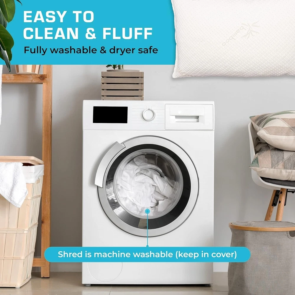 Adjustable: Whether you prefer firm, fluffy, or fine, our memory foam pillows can meet your napping needs. Add or remove the padding with the inner zipper to set your level of comfort Lump-Free: This bed pillow combines luxury with comfort to create a smooth, no-lump sleeping experience, every night Cooling - We've designed our back, stomach, and side sleeper pillow with extra-breathable fabric to keep you cool even on those scorching summer nights. We made our cooling pillows Cover with Micro-Vented Rayon Derived from Bamboo to keep you cool all night long. 65% Polyester 35% Rayon Derived from Bamboo, Imported. Stays Firm: Our cooling pillow won't fall flat on you. Rest your weary head for years to come on a pillow that's designed to maintain its shape, even after heavy usage Easy-Clean Cover: Our bed pillows have a machine washable cover for extra-easy cleanup on your terms