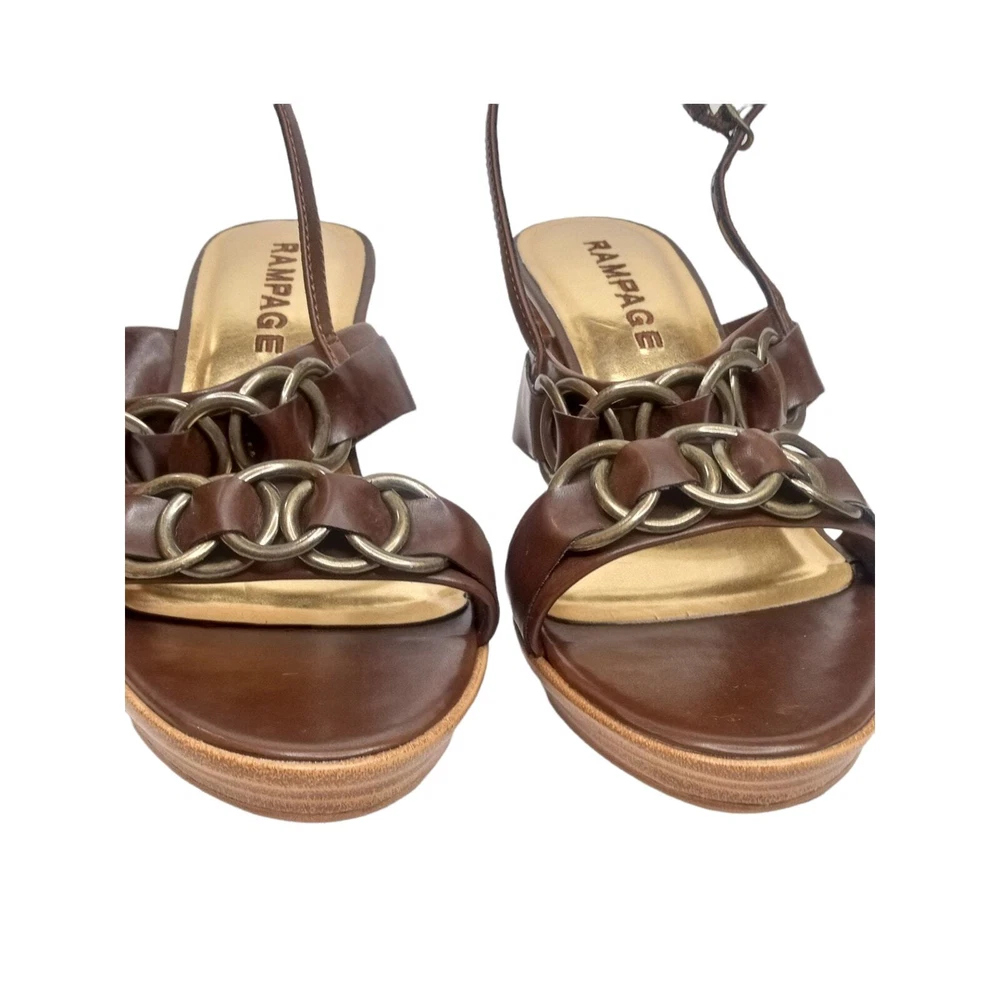Y2K vintage--not a modern replica! Very cute and versatile. Never worn! No box. Pair in photos is the same one for sale so please review all pics carefully for full condition and any marks from storage. *There may be some slight scratches, nicks and bending from being in storage for so long.* New without tags 2000's Y2K Vintage VTG Deadstock/New Old Stock Chunky Sandals Shoes Wooden Stacked Heels Faux Vegan Leather Strappy Brown Bronze Metal Embellishment Size 8 Brand: Rampage Style: Kristee They have been carefully inspected and stress tested, but as with all vintage shoes, lifespan or internal strength can't be guaranteed. Keywords: Cute Cutesy School Kawaii Retro Girly Dressy Academia Grunge Funky Naughty Trendy Streetwear Photo Event Dance Party Club Dance Minimalist Bratz VTG Steampunk Dark Preppy 2000's Color/texture may vary due to lighting/devices. Smoke-free/pet-free home. ID:SR/1.8
