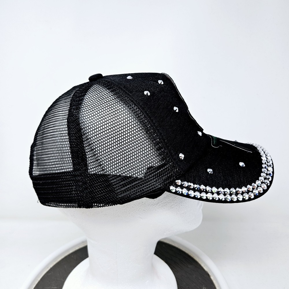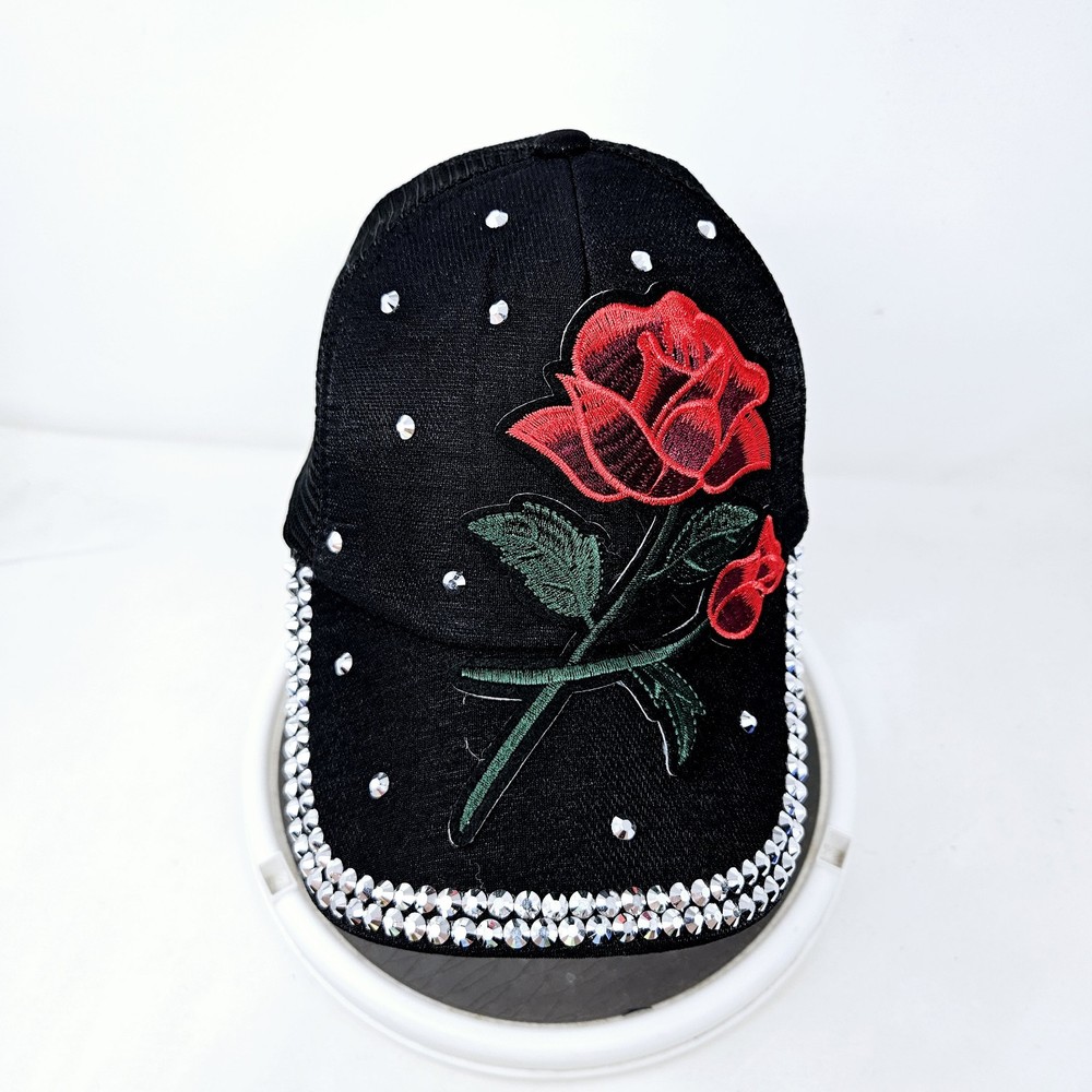 Y2K Black-Red Rose & Silver Stud Biker Trucker Hat for Women