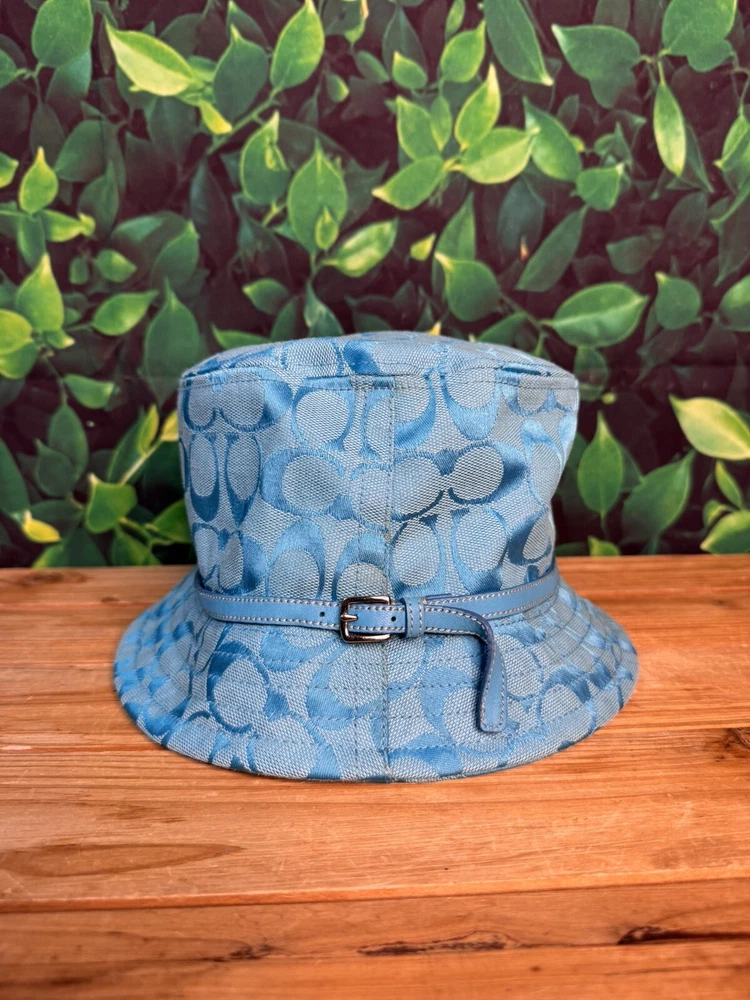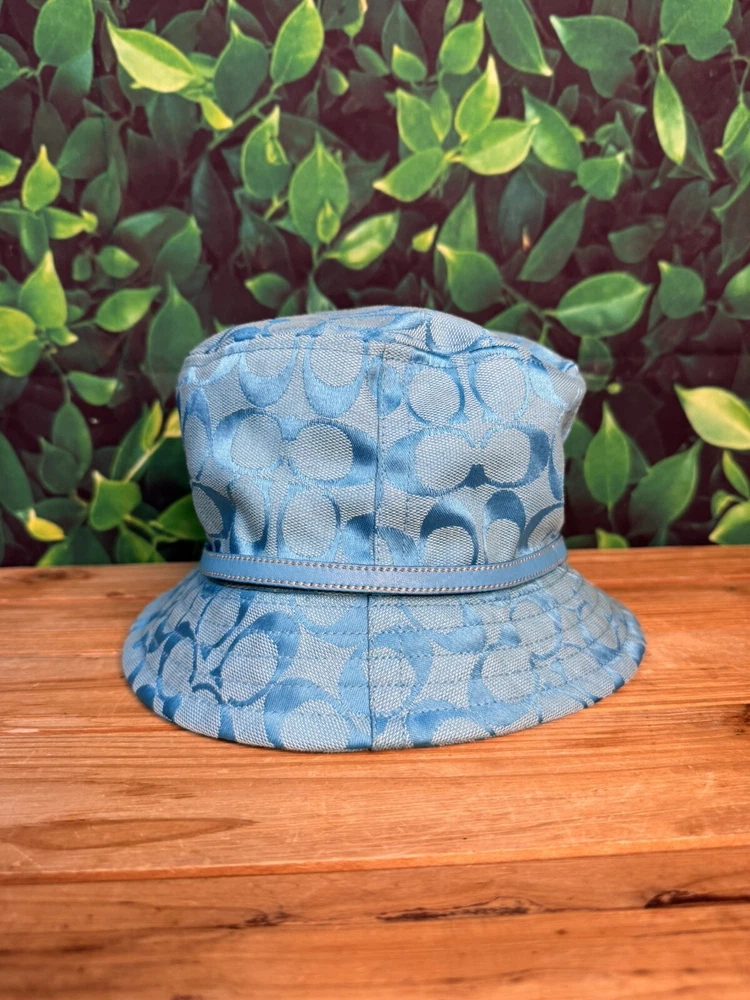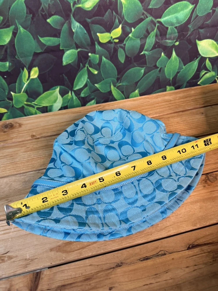 Y2K Coach BRIGHT BLUE Signature Monogram Bucket Hat Leather Trim. Condition is Pre-owned. Shipped with USPS Ground Advantage.