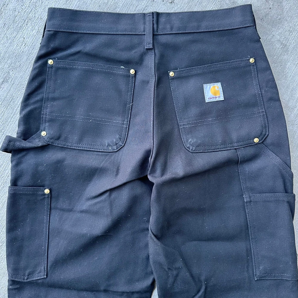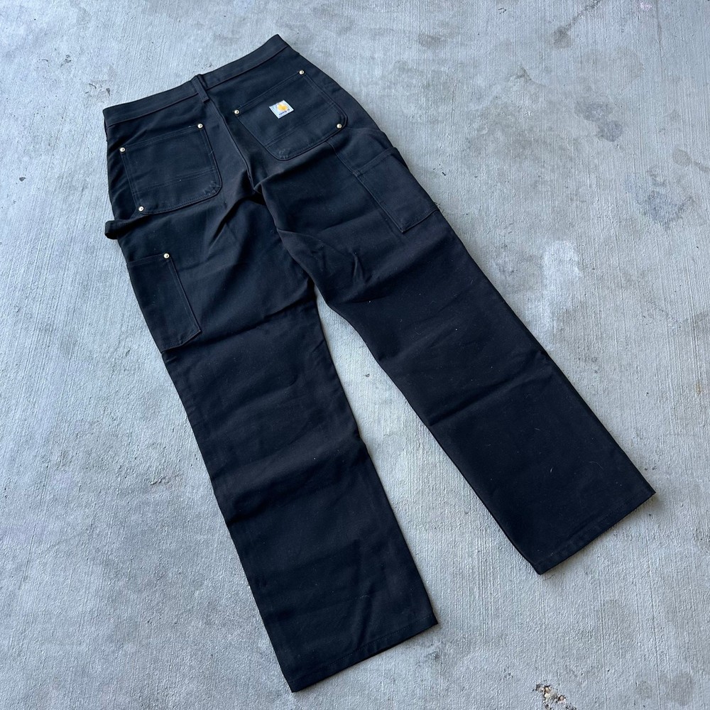 Vintage Y2K black Carhartt double knee work wear carpenter pants. Great pair! Measures 29x30 with an 8.75 inch leg opening. Please check measurements before purchasing. I do my best to show any flaws in pictures. Quick shipping! Bundles encouraged! @ants_haul on Instagram. 0654!!!